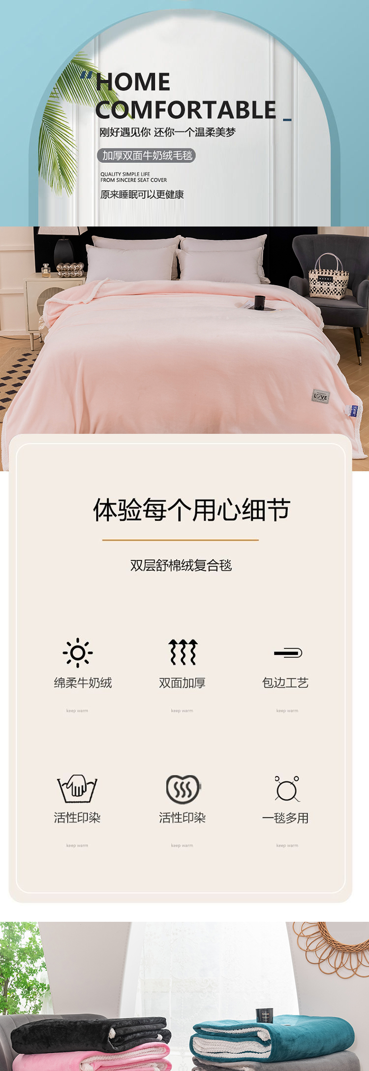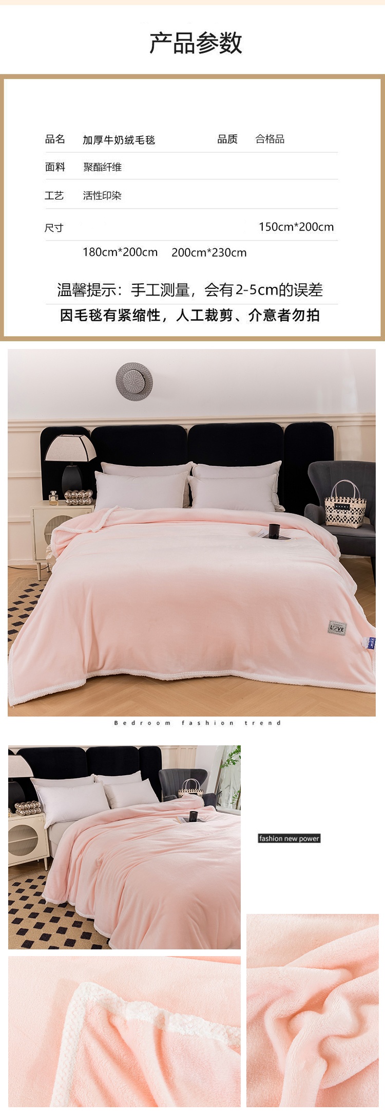 商品名称:凤凰林毛毯 2024新款加厚亲肤牛奶绒毛毯 樱花粉