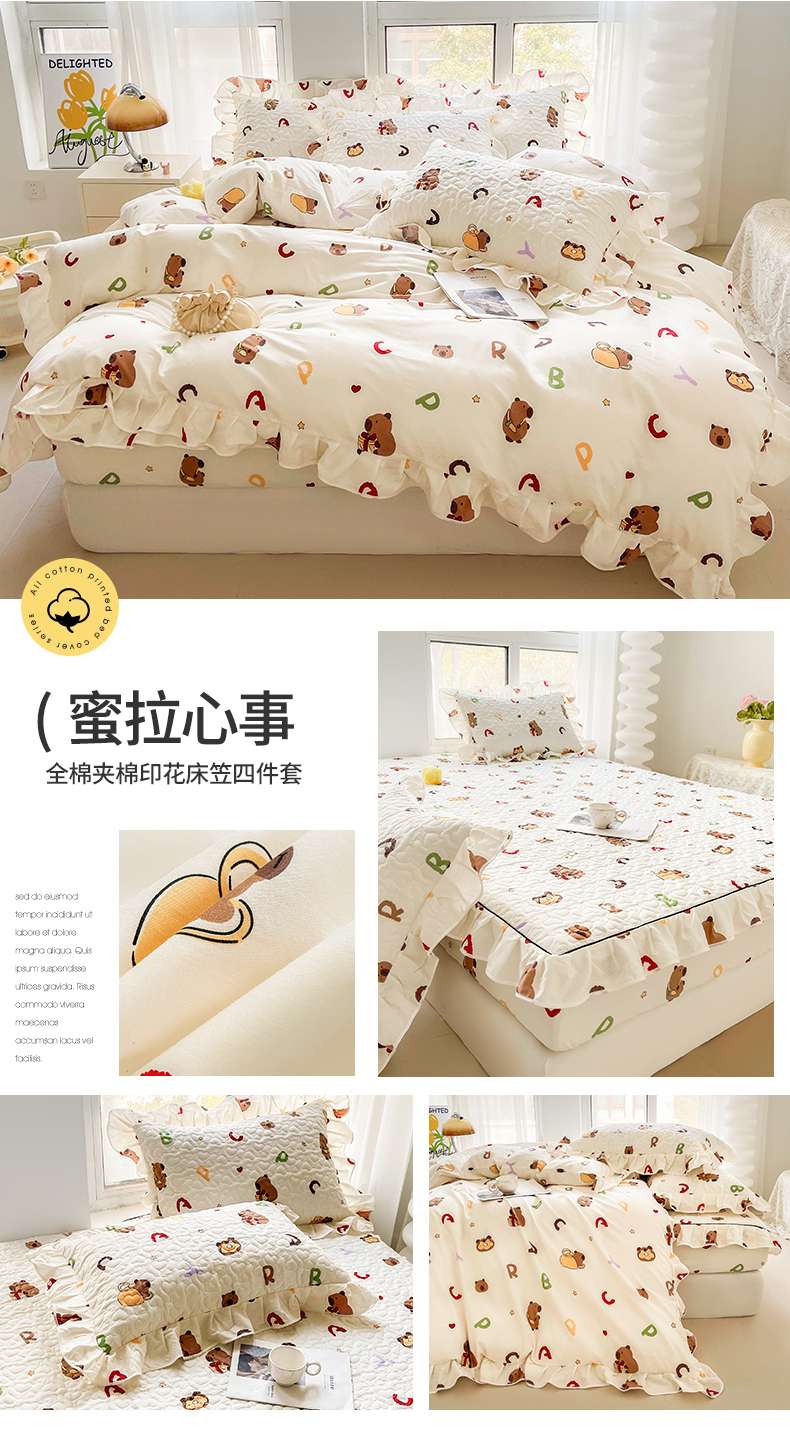 (总)宜凡家纺 2024新款全棉印花夹棉床笠四件套