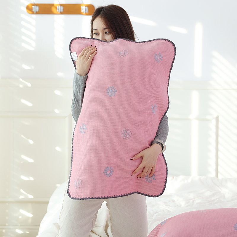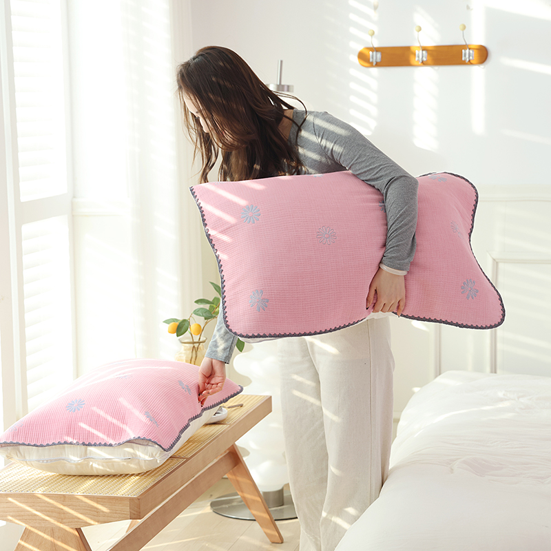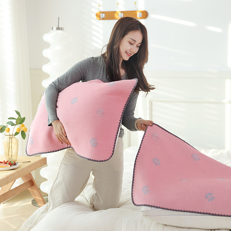 朴尔毛巾被2024年新品柔绵绵风贝壳针复合工艺六层纱布枕巾 风中雏菊-粉枕巾52*78cm