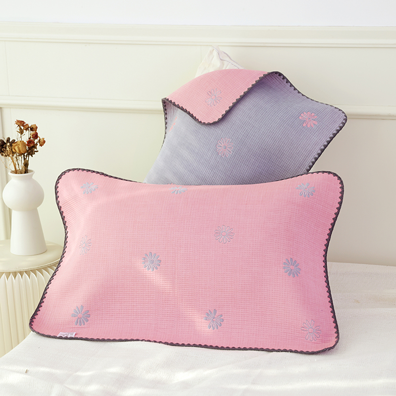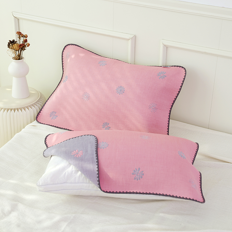 • 91家纺网 家纺一手货源 找家纺 朴尔毛巾被2024年新品柔绵绵风贝壳针复合工艺六层纱布枕巾 风中雏菊-粉枕巾52*78cm