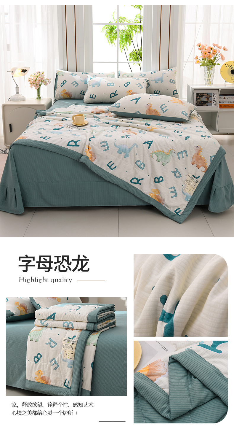当前位置: 91家纺网 > 商品网购 > 床品套件 > 四件套 > 夏被四件套 > 盈超2024新款A类有氧提花泡泡纱床裙夏被四件套 字母恐龙