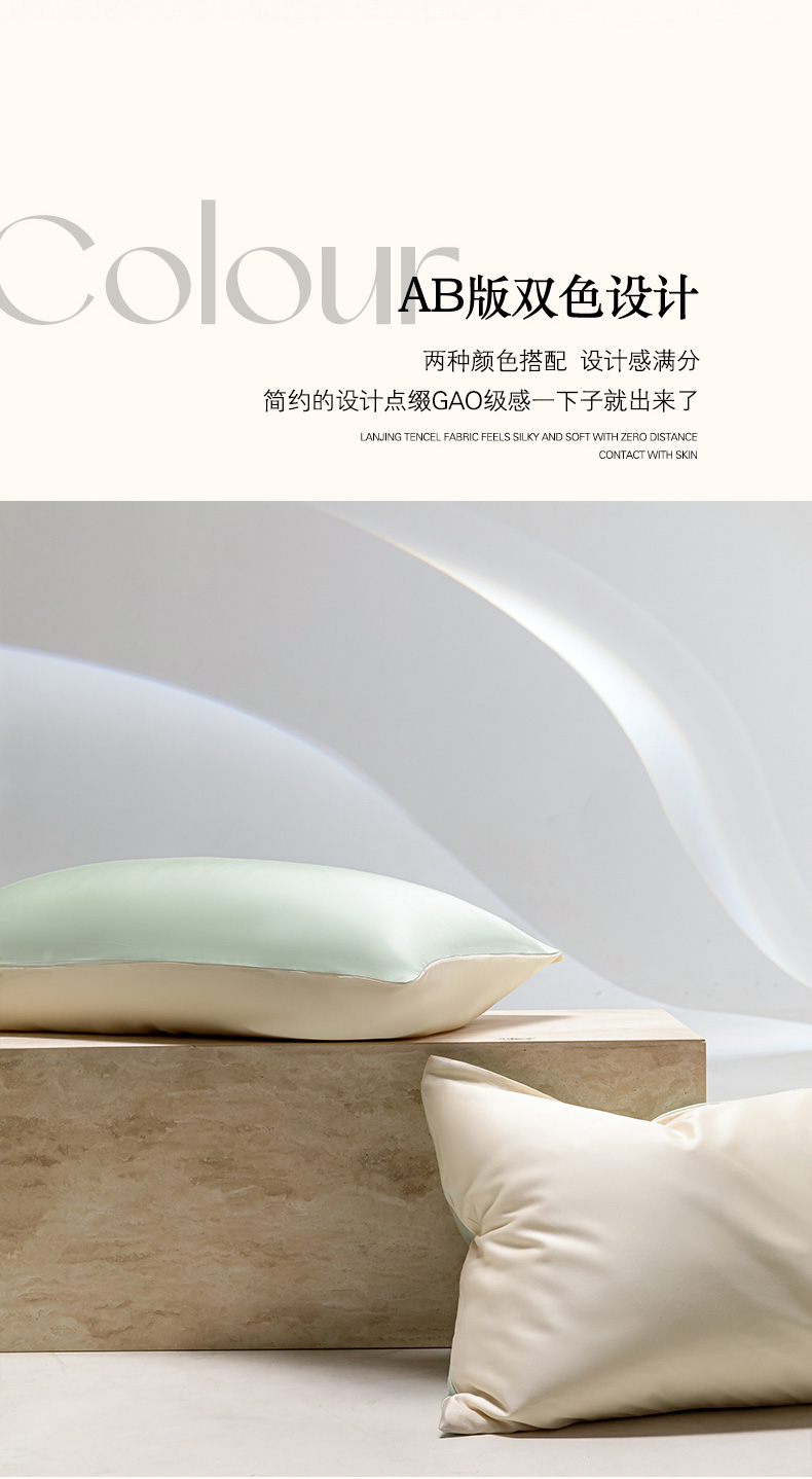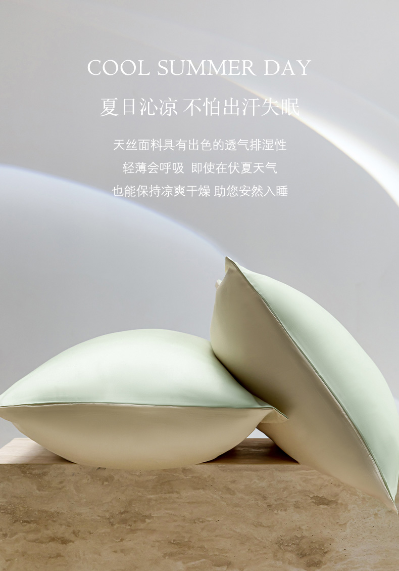 云栖家居 202460支A类兰精天丝系列单品枕套(风格一) 浅绿+香槟