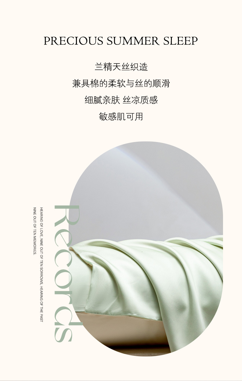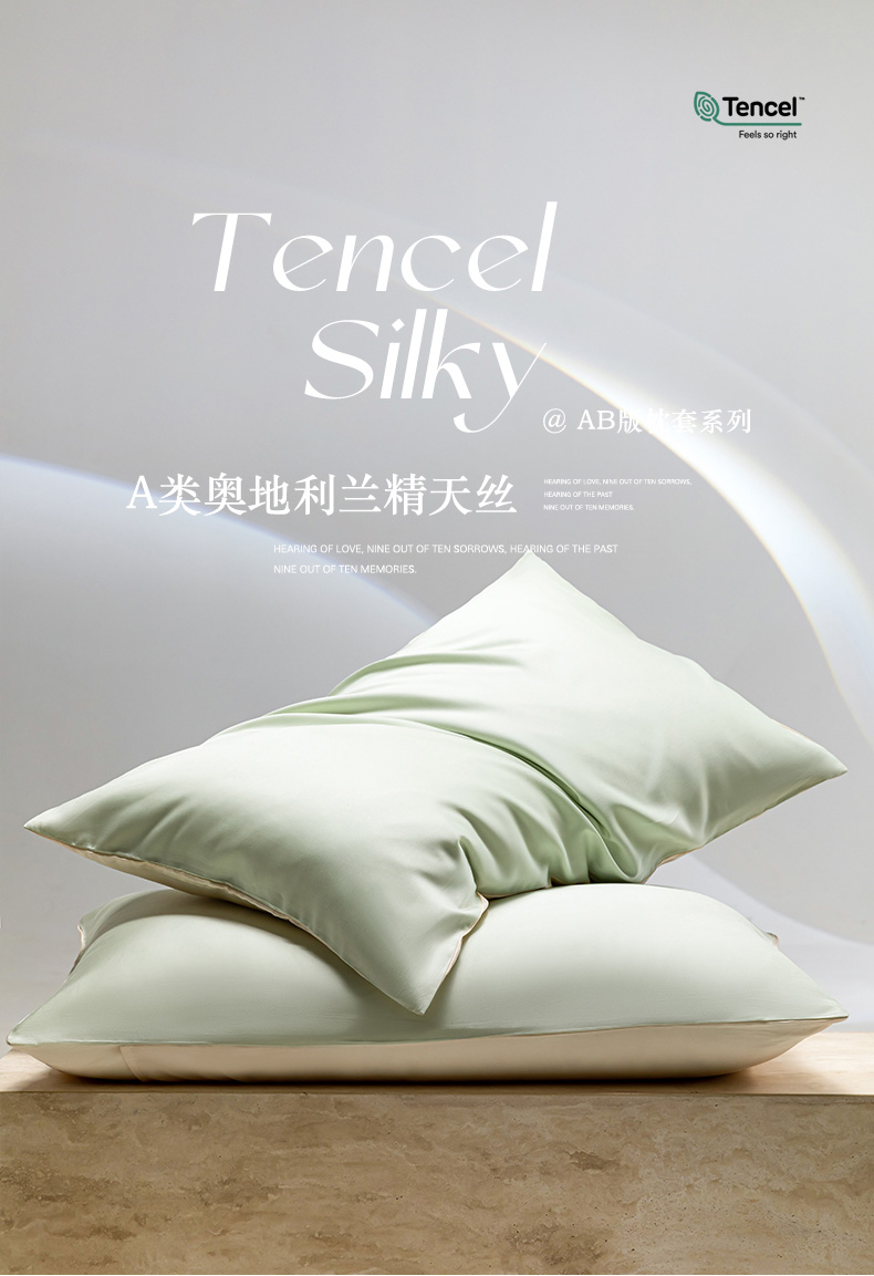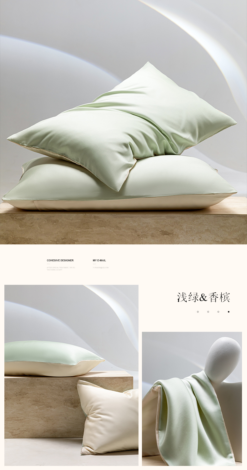 商品名称:云栖家居 202460支A类兰精天丝系列单品枕套(风格一) 浅绿+香槟