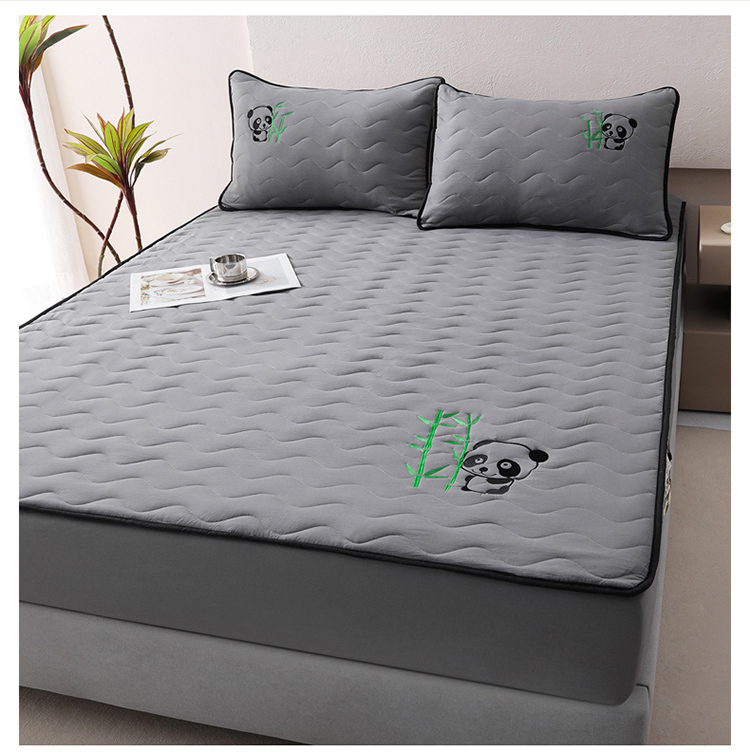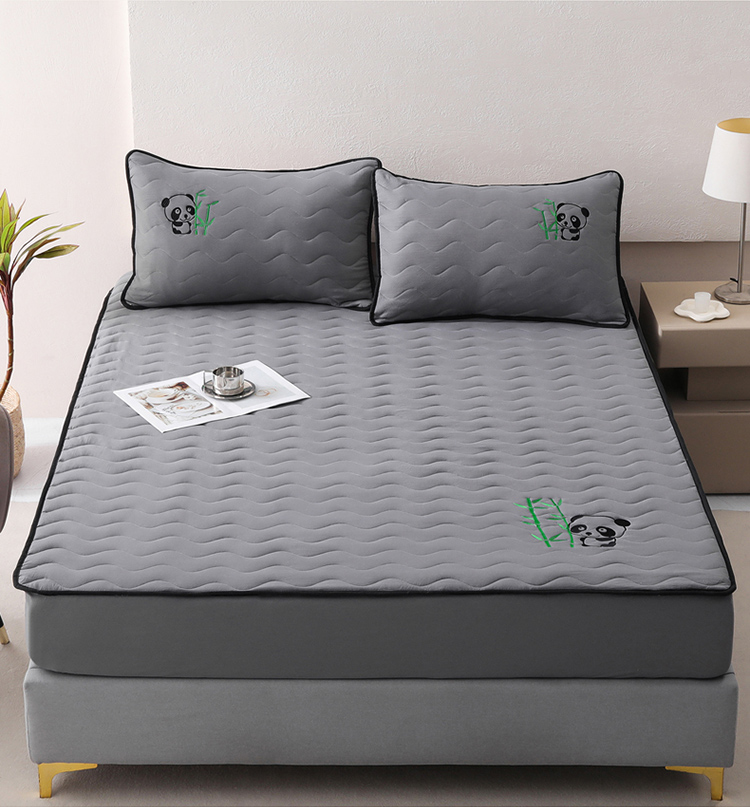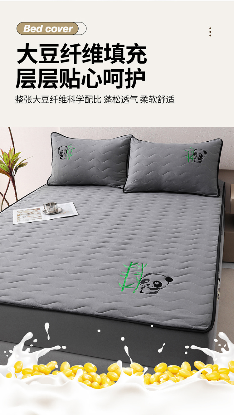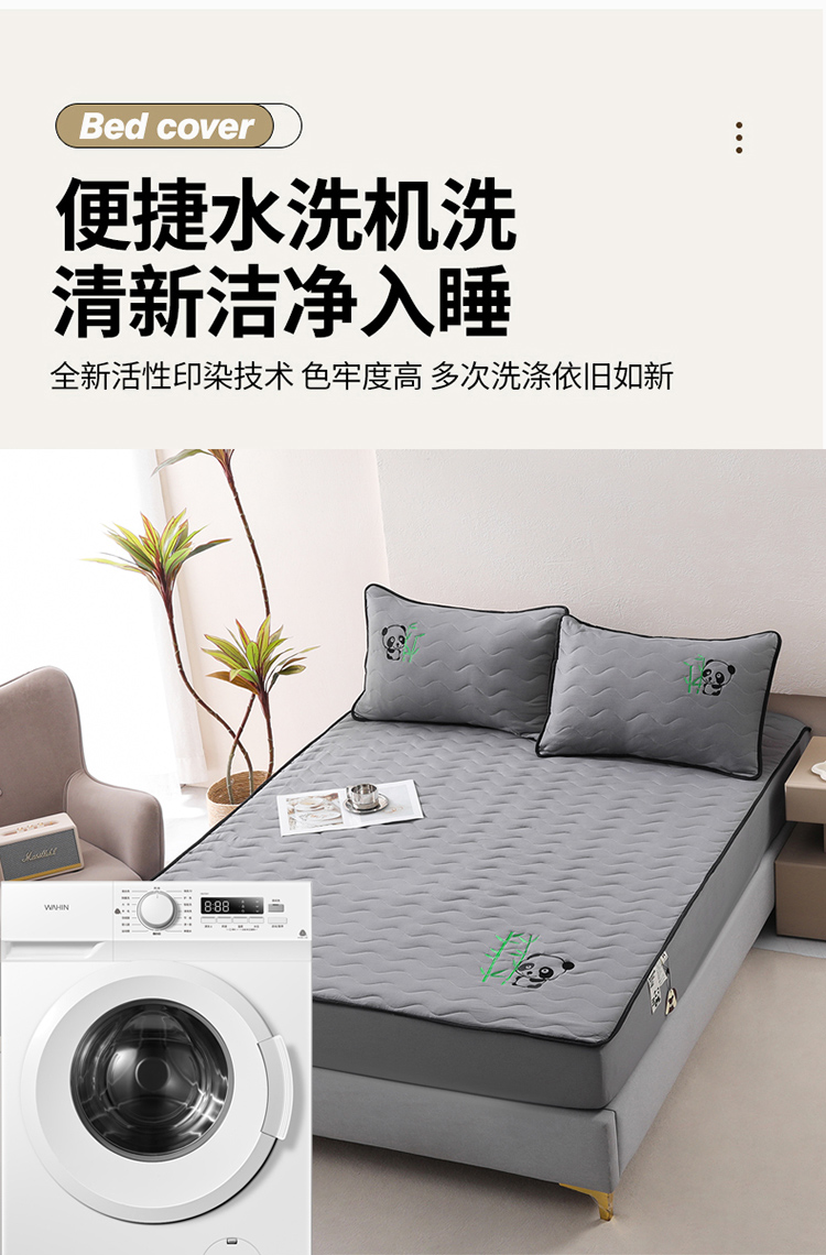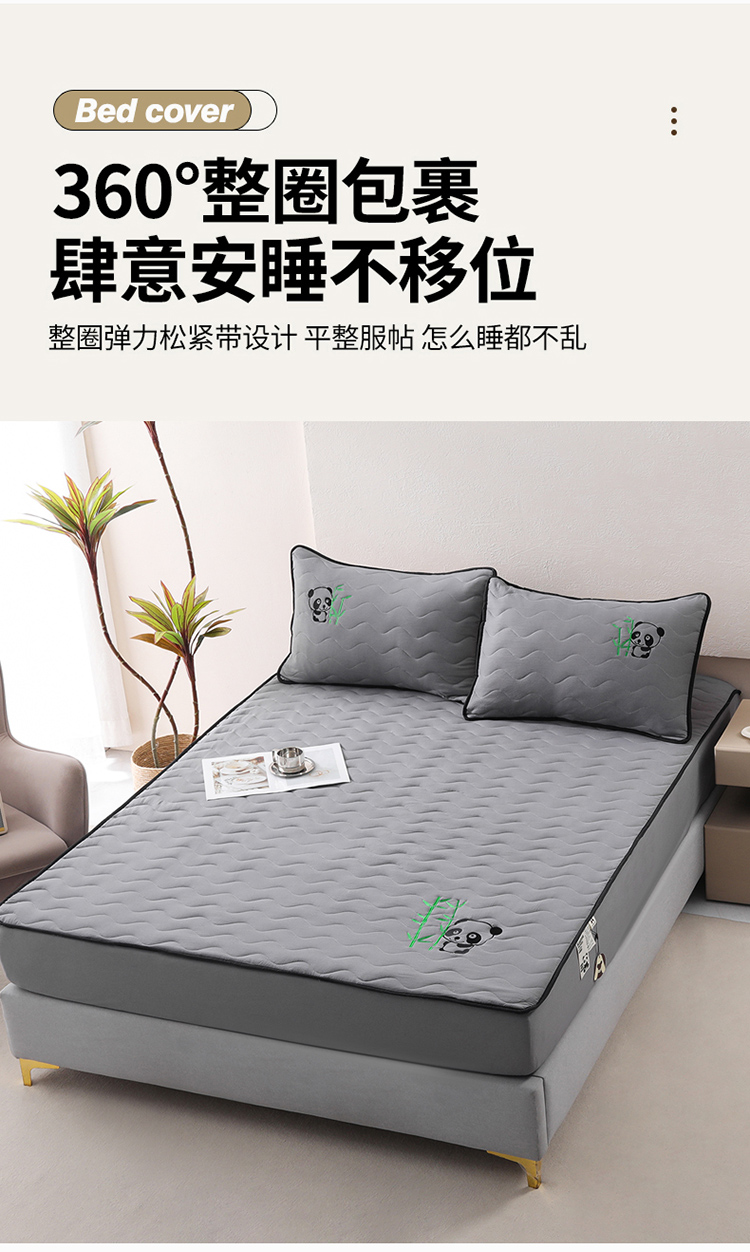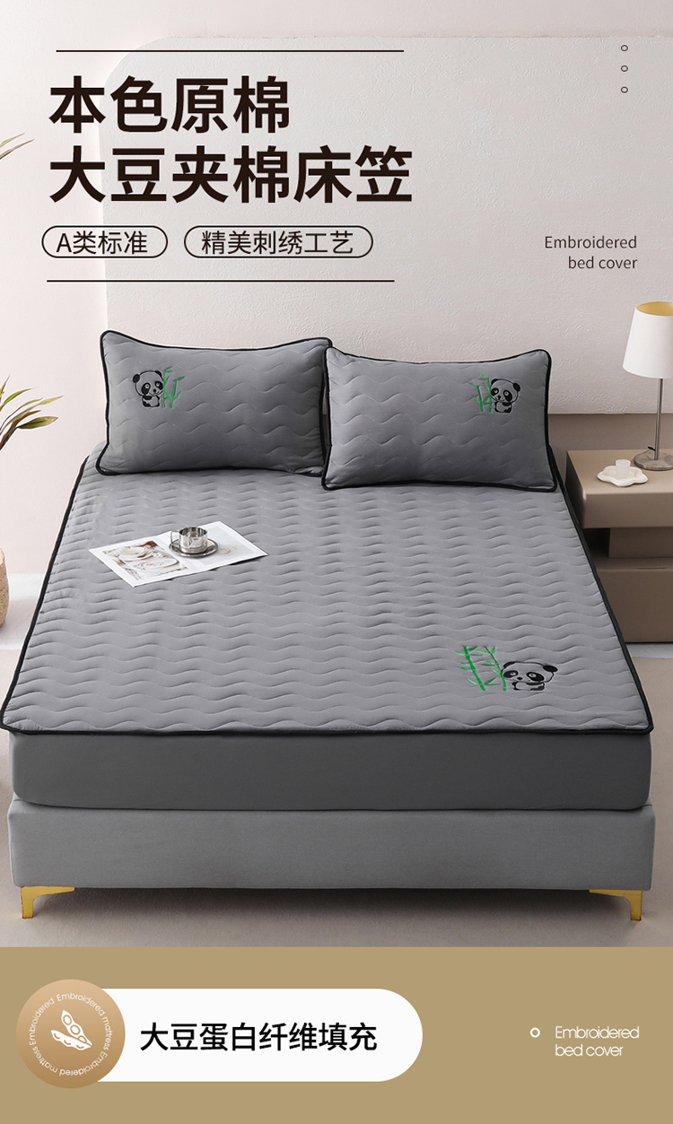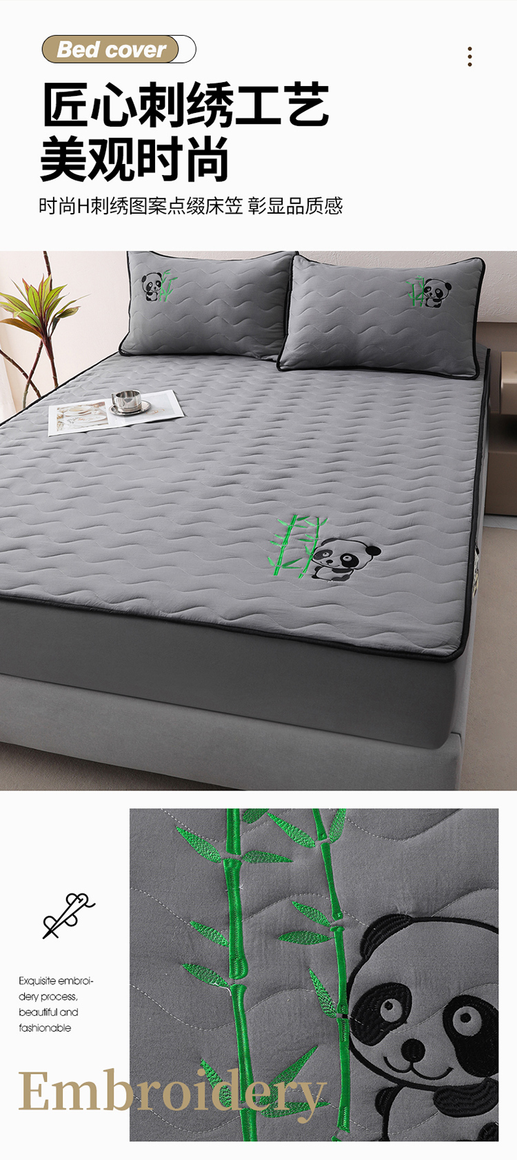 • 91家纺网 家纺一手货源 找家纺 恒尚居 2024新款熊猫刺绣水洗原棉大豆床笠-四季款 深灰色