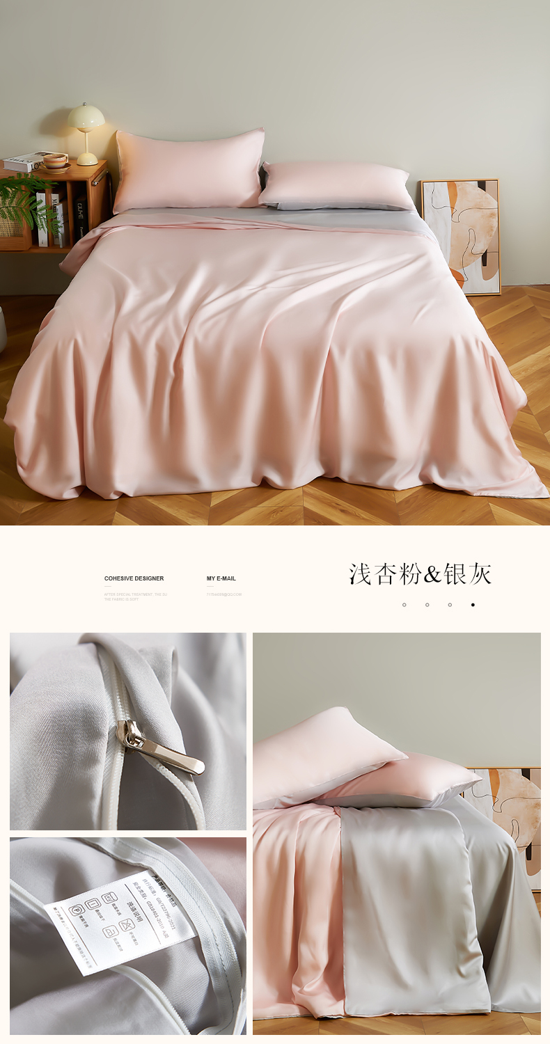 商品名称:云栖家居 202460支A类兰精天丝系列单品被套(风格二) 浅杏粉&银灰