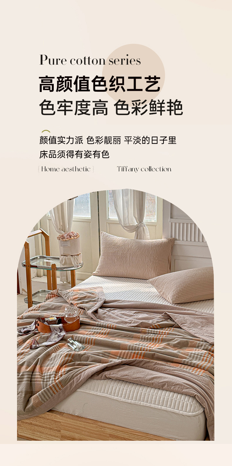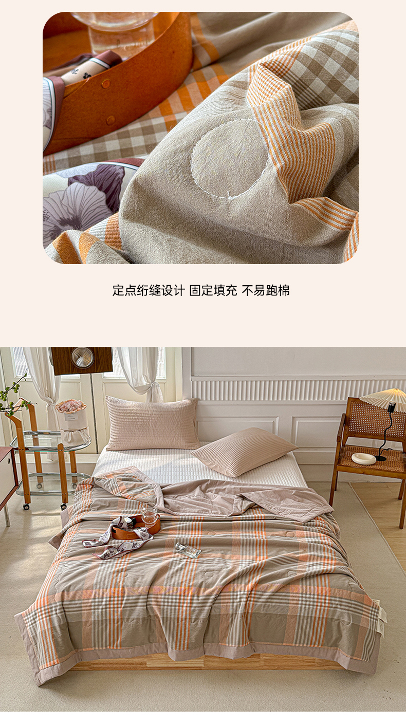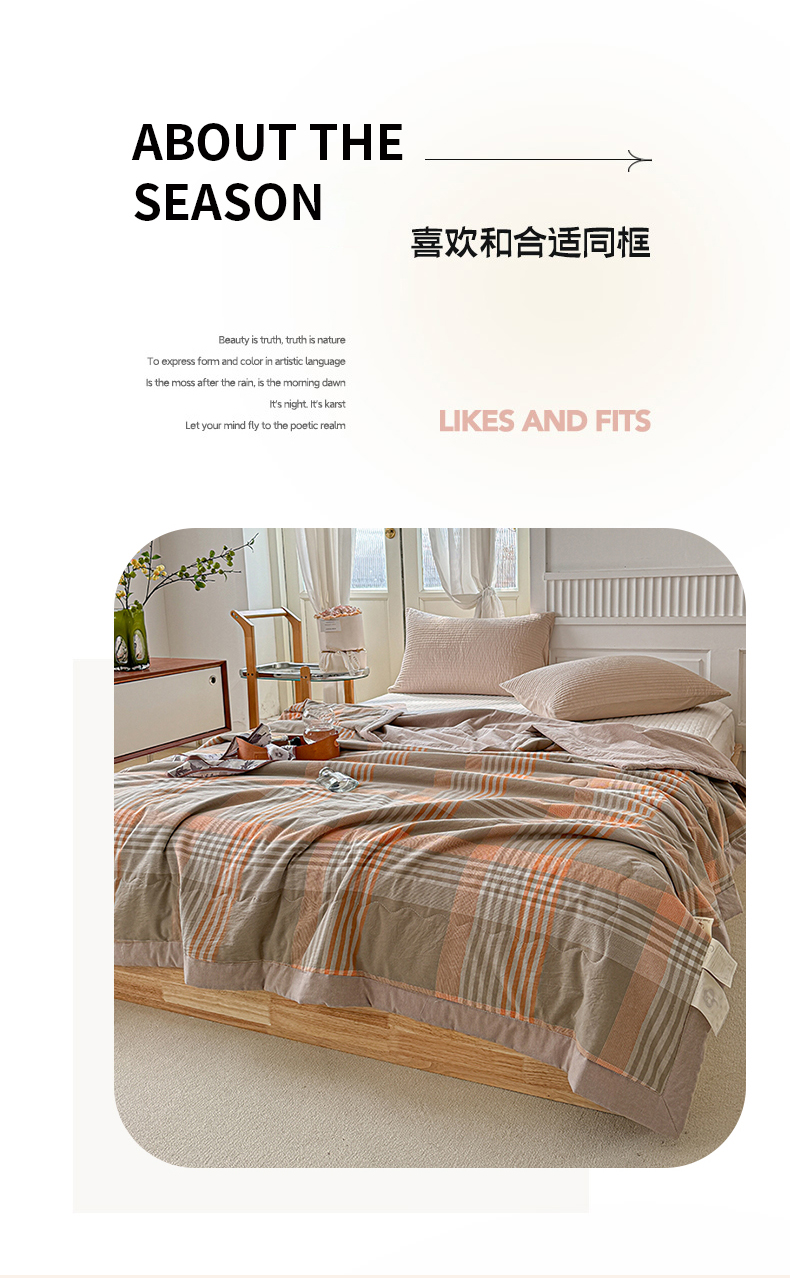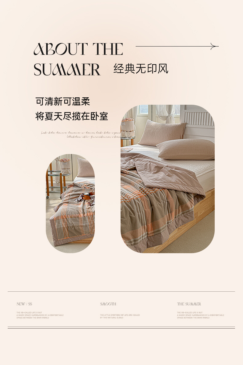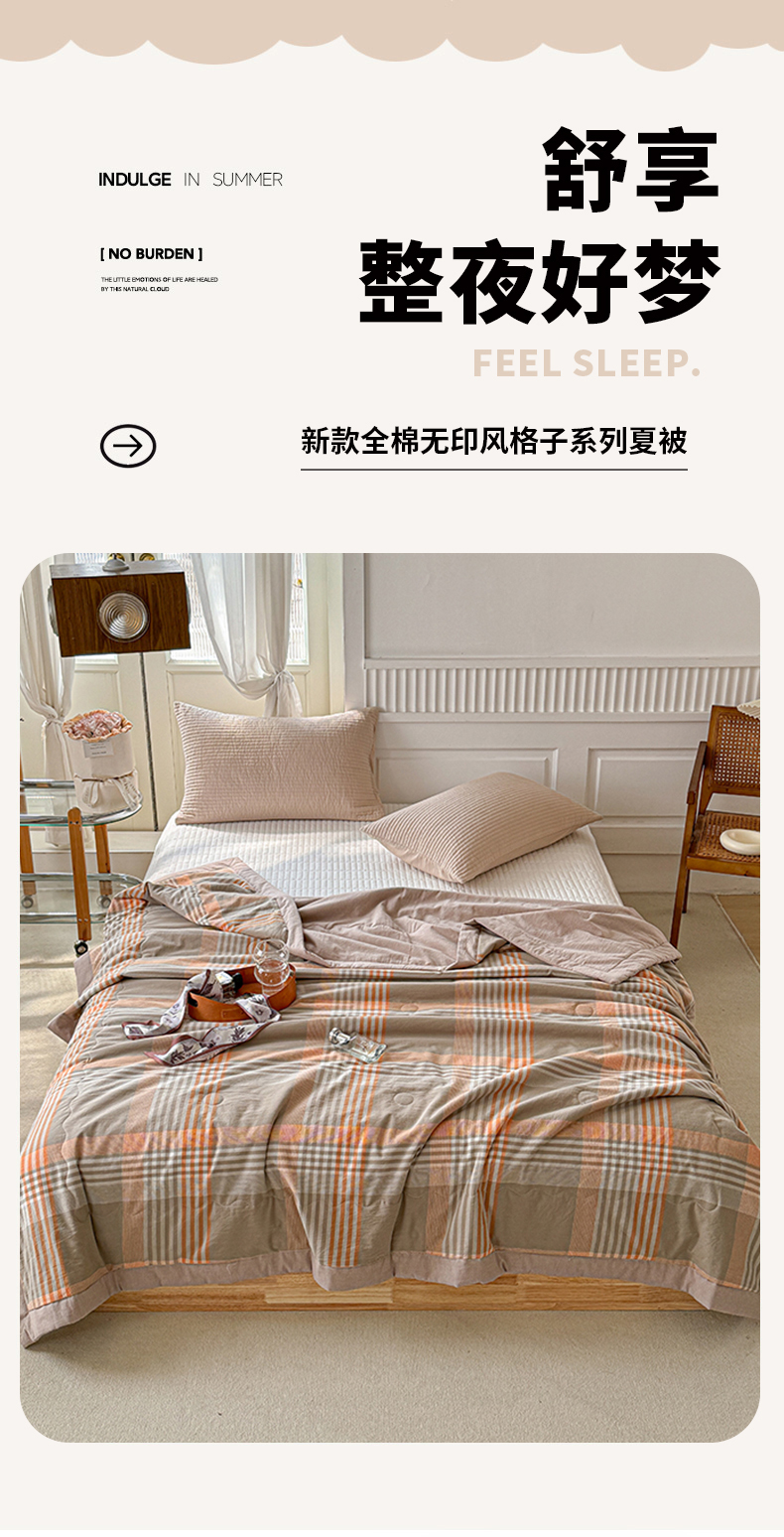 源舜家纺 2025新款全棉色织无印夏被 灰咖格