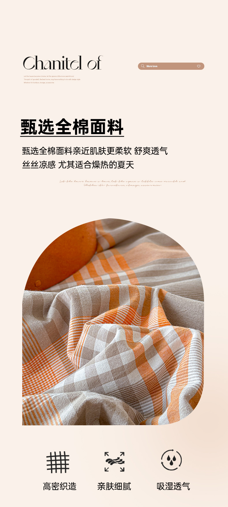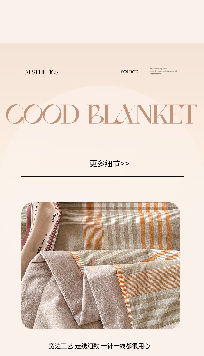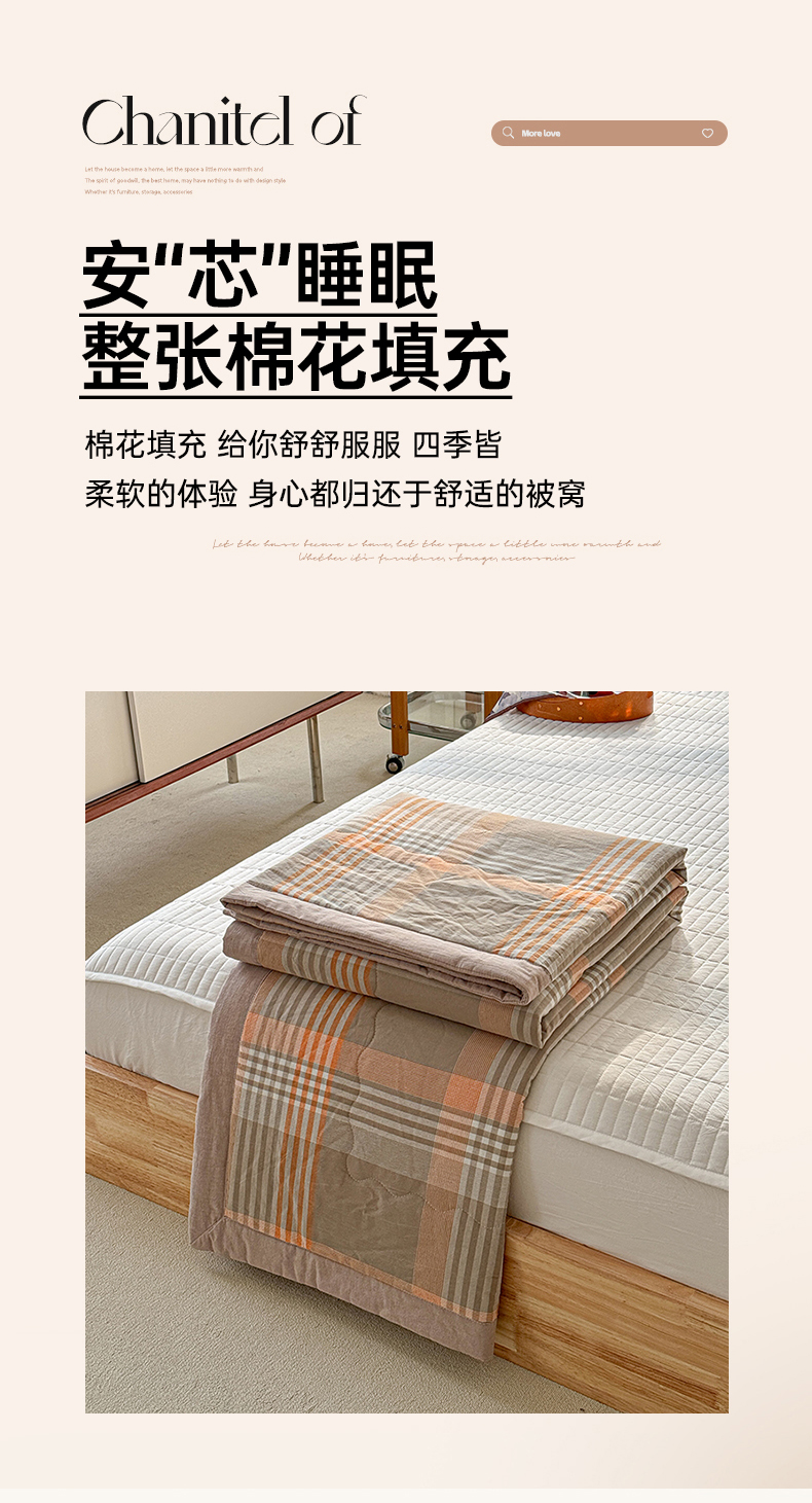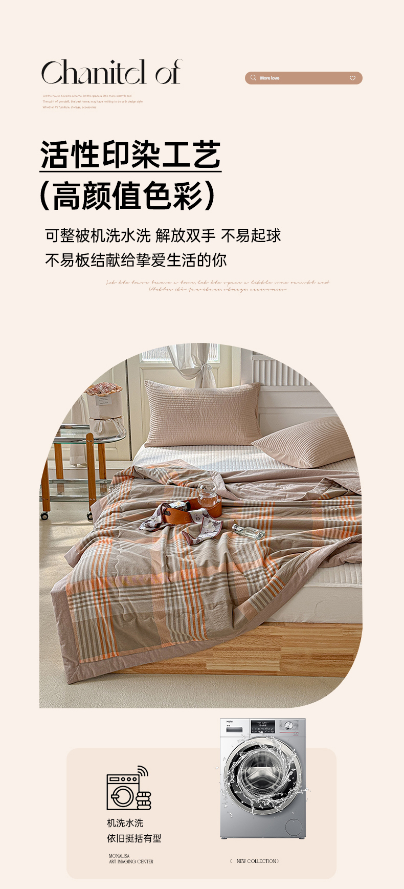 源舜家纺 2025新款全棉色织无印夏被 灰咖格