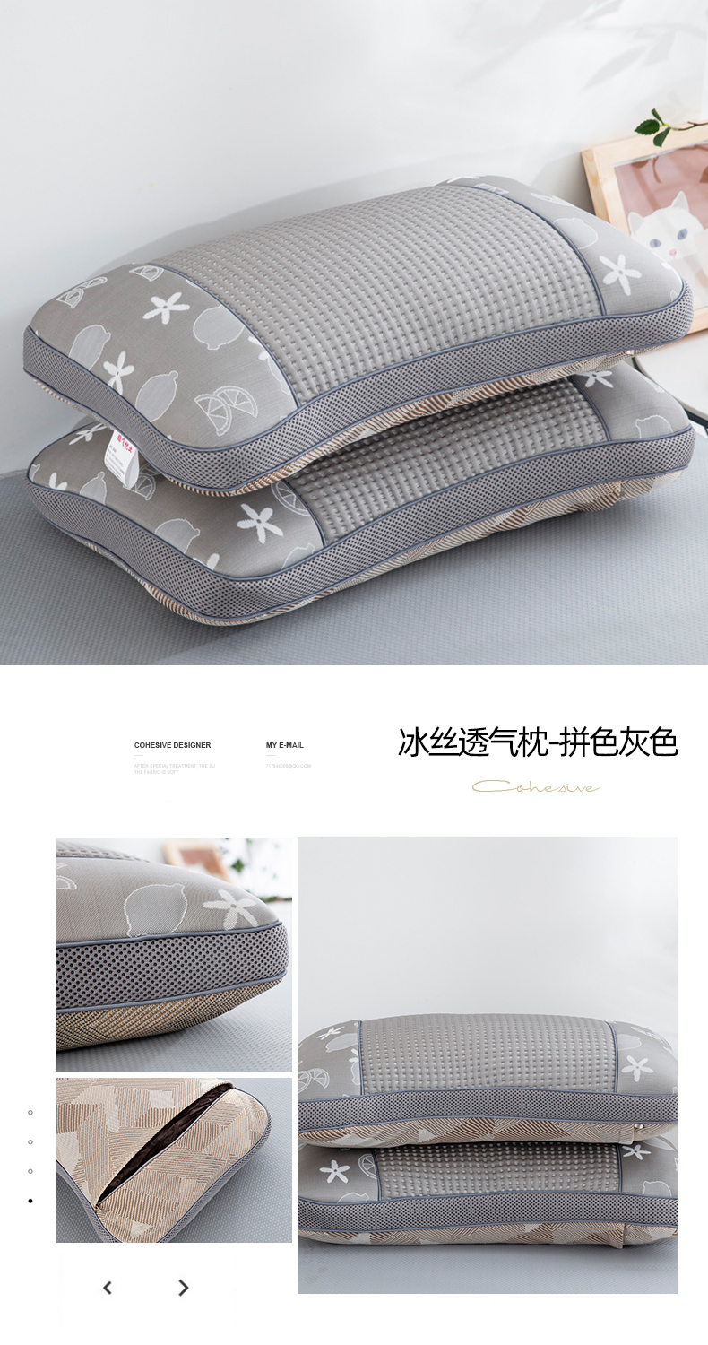 纽乐家纺 2024新款冰丝透气茶叶枕 冰丝透气枕-拼色灰色35*55cm
