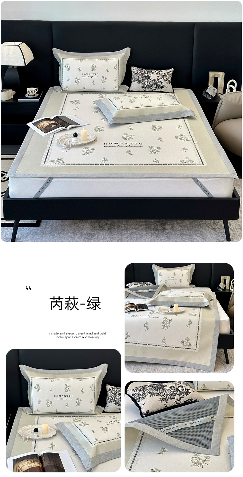商品名称:JUICY 橘滋家纺 2024新款A类数码印花抑菌冰丝床席款床笠款软凉席套件 芮萩-绿(平席款)