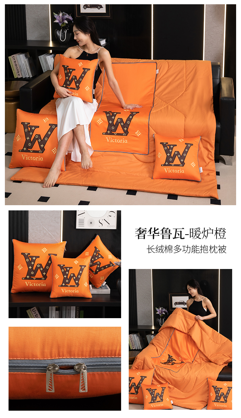 商品名称:吉利家居 2024新款长绒棉多功能抱枕被-奢华鲁瓦 暖炉橙