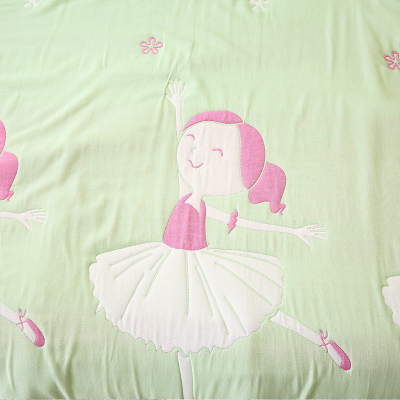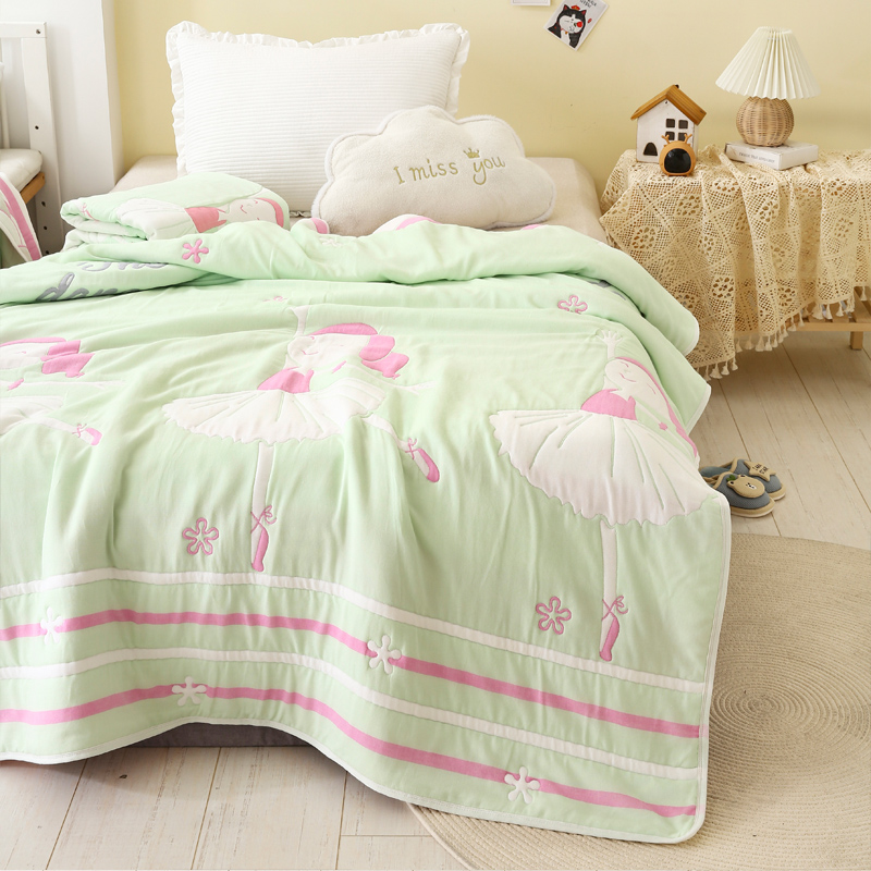 朴尔家纺-毛巾被 2024年全棉十层纱布加厚儿童盖被毛巾被 爱跳舞的姑娘绿