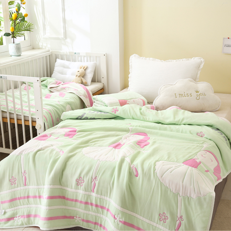 商品名称:朴尔家纺-毛巾被 2024年全棉十层纱布加厚儿童盖被毛巾被 爱跳舞的姑娘绿