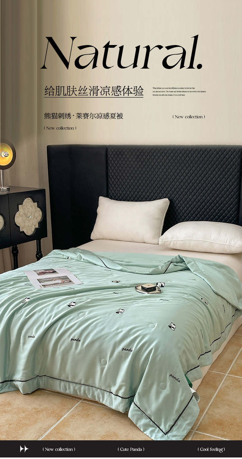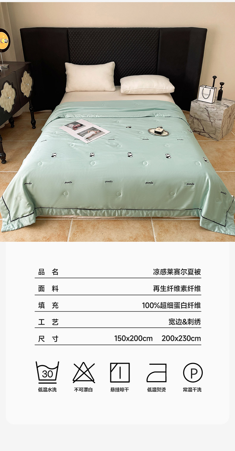 (总)被靠被 2024新款熊猫刺绣凉感莱赛尔夏被被子被芯,茶绿,甜粉,雅灰,猫眼绿,桃粉,暖鹅黄