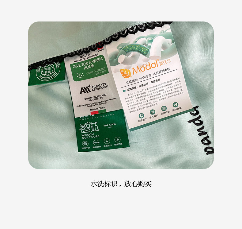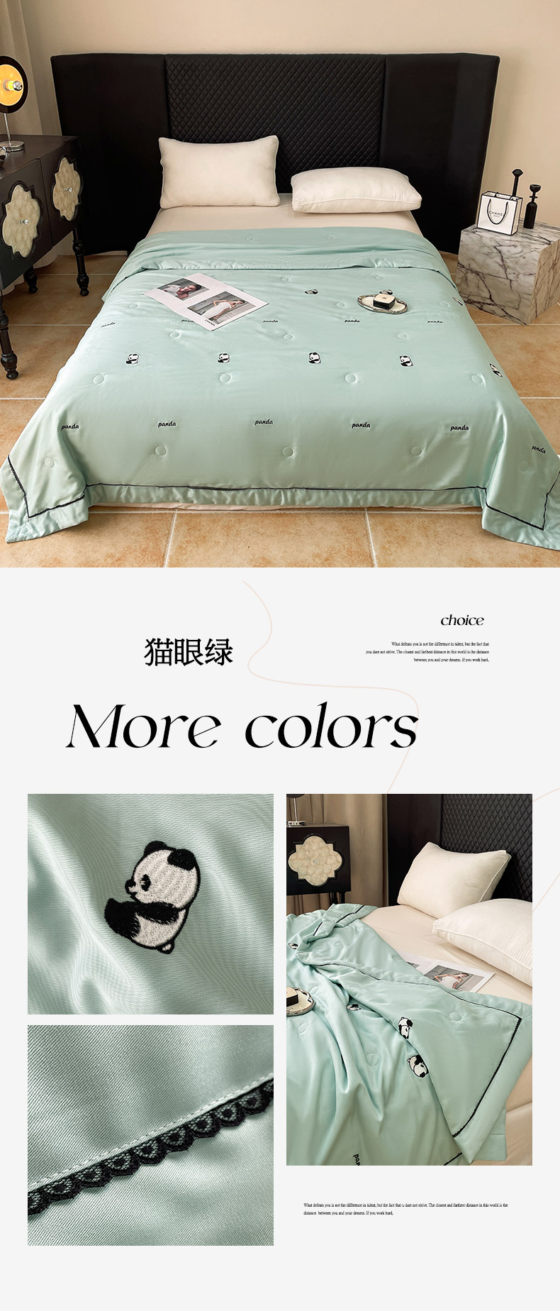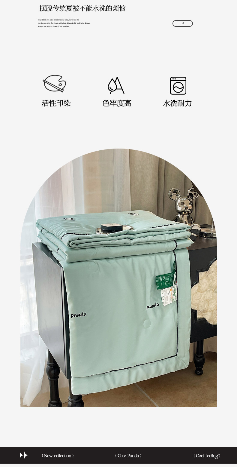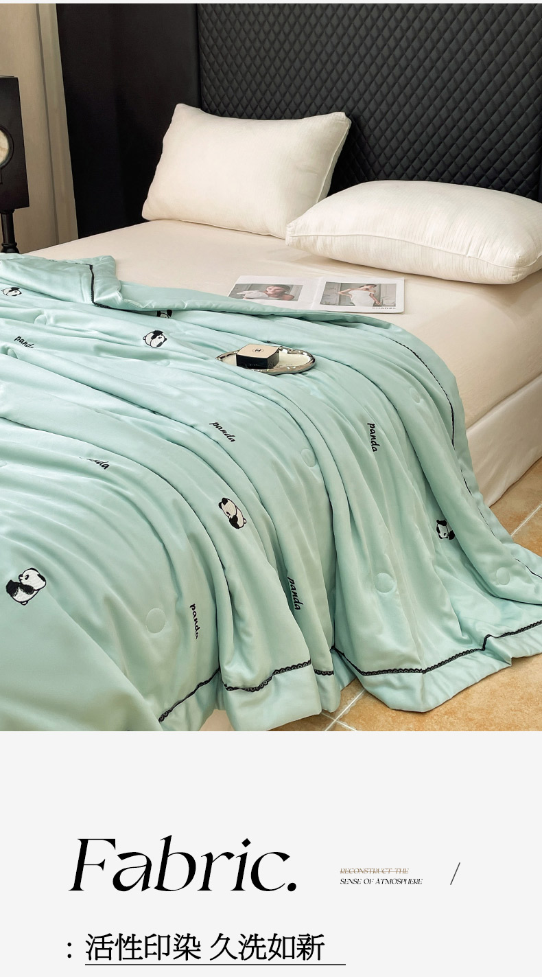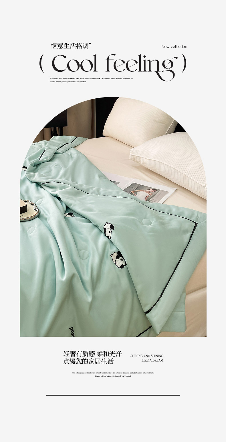 商品名称:被靠被 2024新款熊猫刺绣凉感莱赛尔夏被被子被芯 猫眼绿