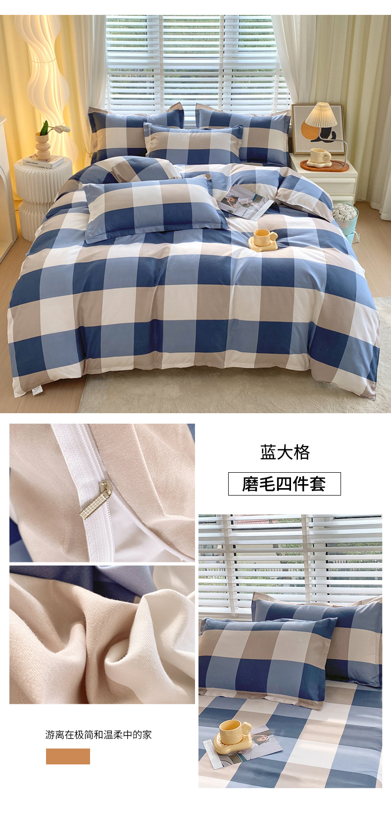 当前位置: 91家纺网 > 商品网购 > 床品套件 > 四件套 > 普通磨毛四件套 > 金丝兔 2025新款植物羊绒加厚磨毛印花四件套直播热款全年供货量大可送 蓝大格