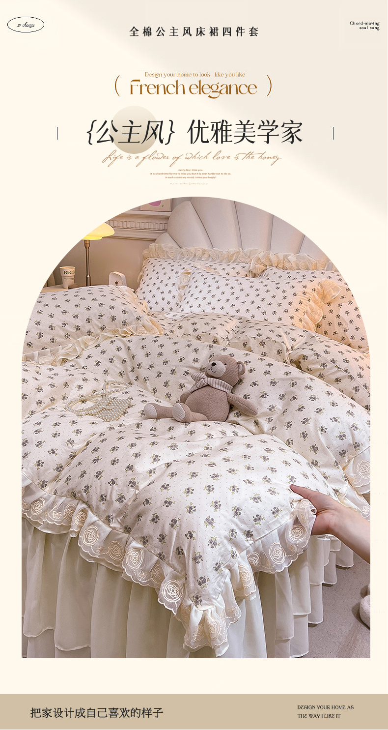 当前位置: 91家纺网 > 商品网购 > 床品套件 > 四件套 > 全棉普通四件套 > 恒爱家纺 2024新款梦幻情缘全棉公主风四件套 泰然自若