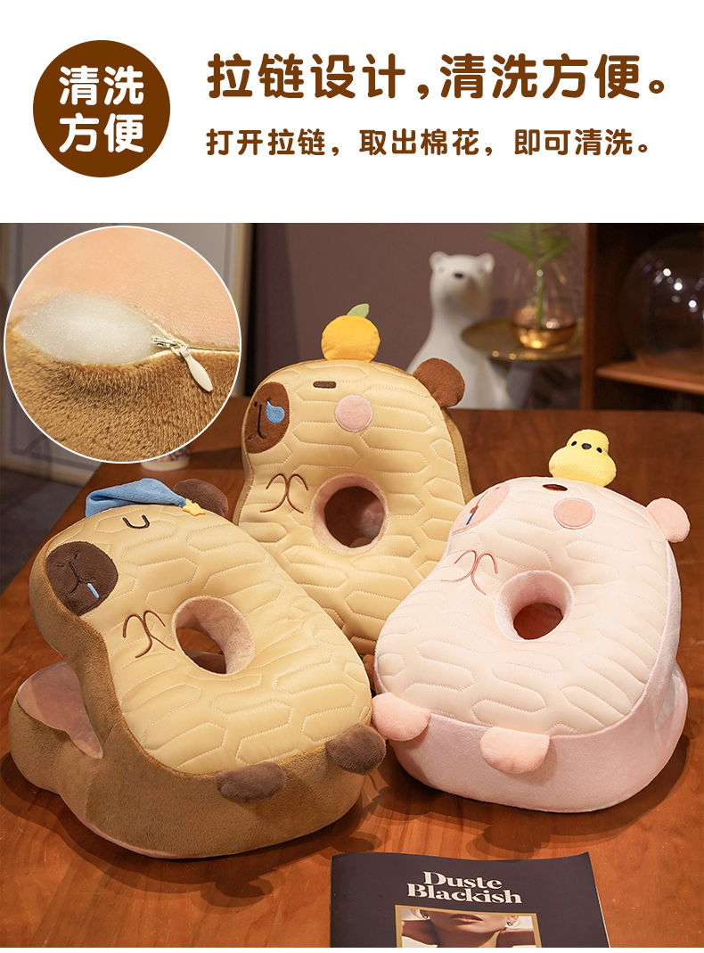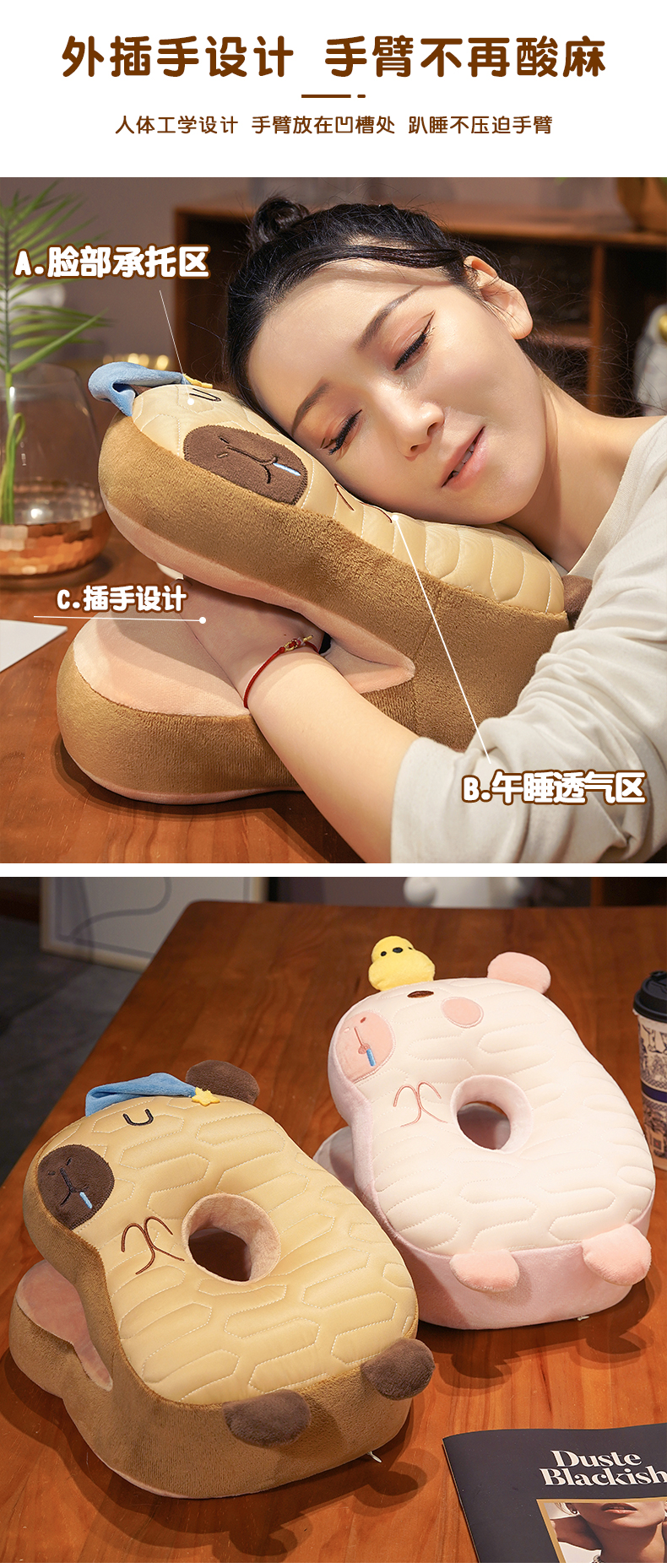 仟亿莱 2024新款佛系水豚乳胶冰丝午睡枕 乳胶橘子水豚午睡-1