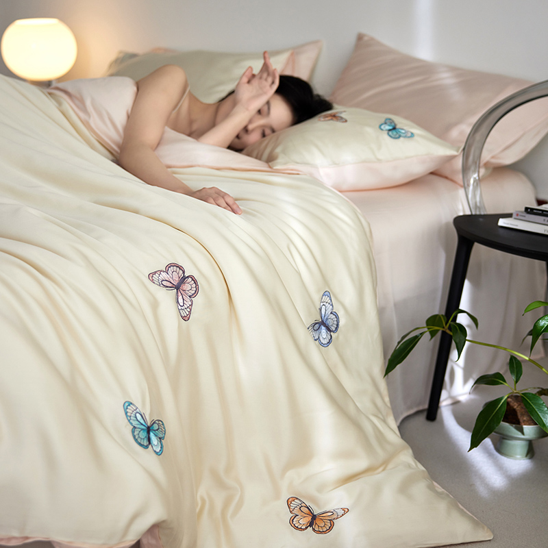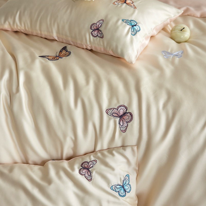 初拾 2024新款A类天丝棉刺绣系列四件套-法拉 法拉-米黄
