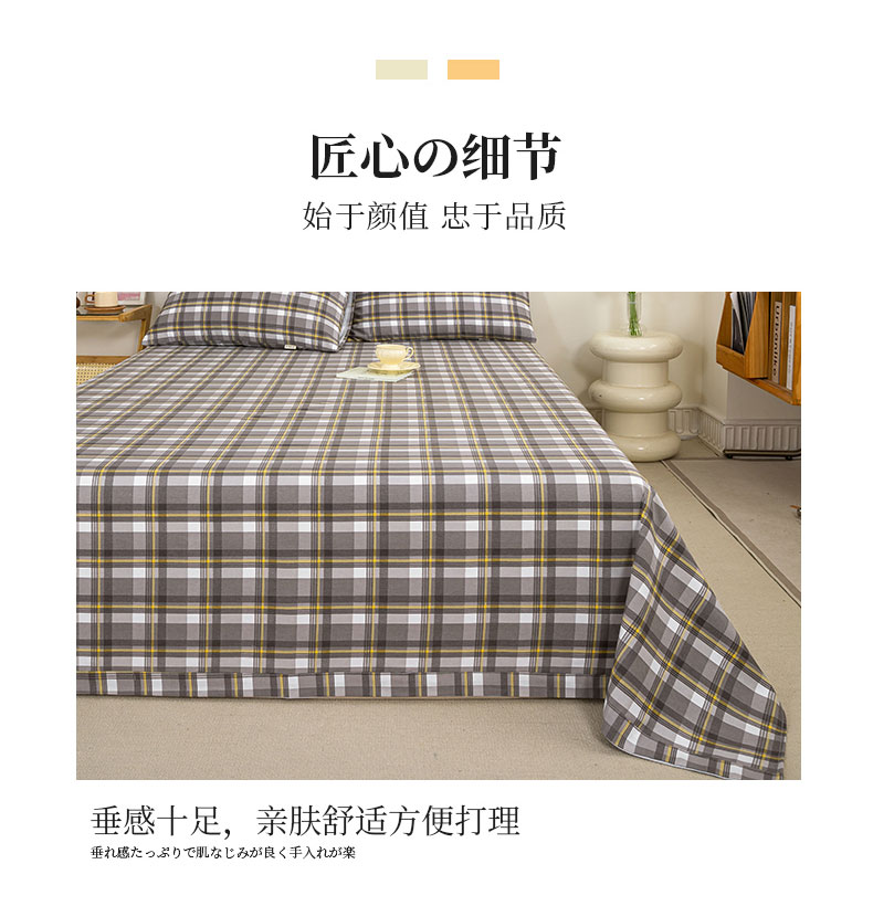 鸣升 新款舒适透气100%全棉老粗布床单 莫妮卡(灰)