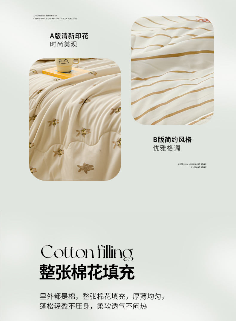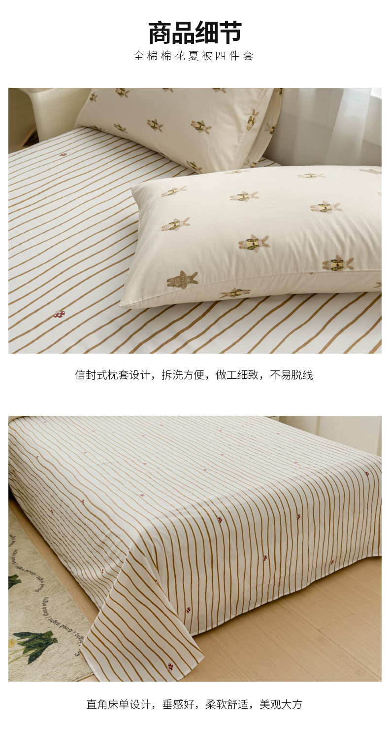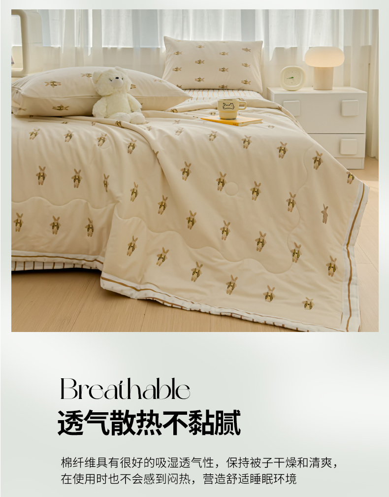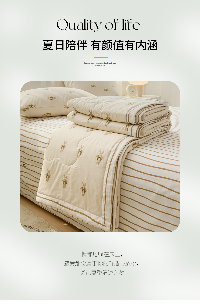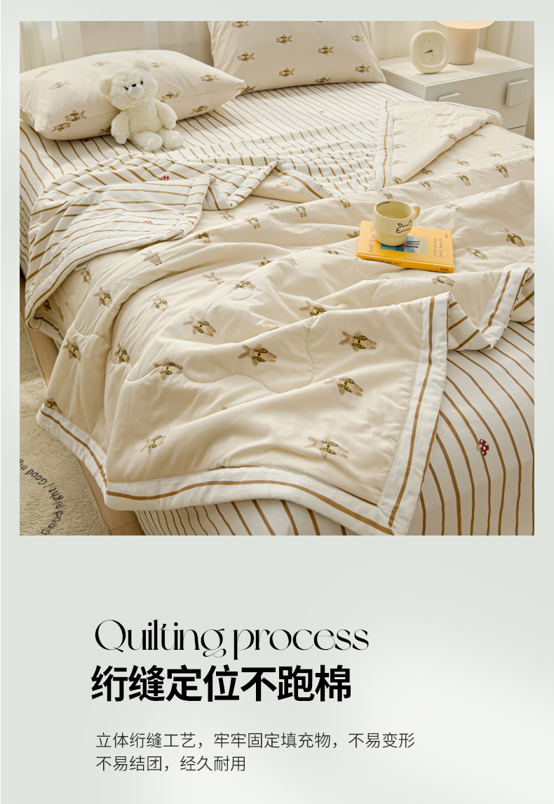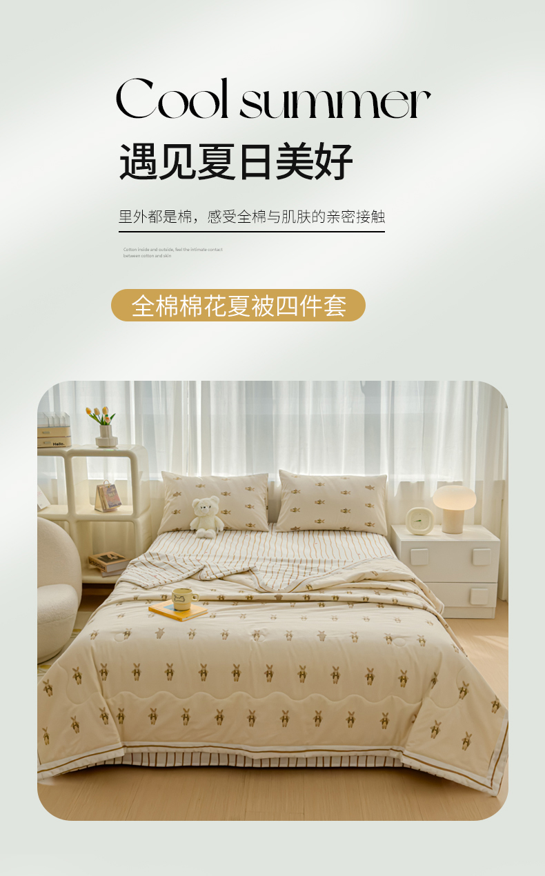 金丝鸟家纺 2024新款全棉棉花夏被四件套 跳跳兔