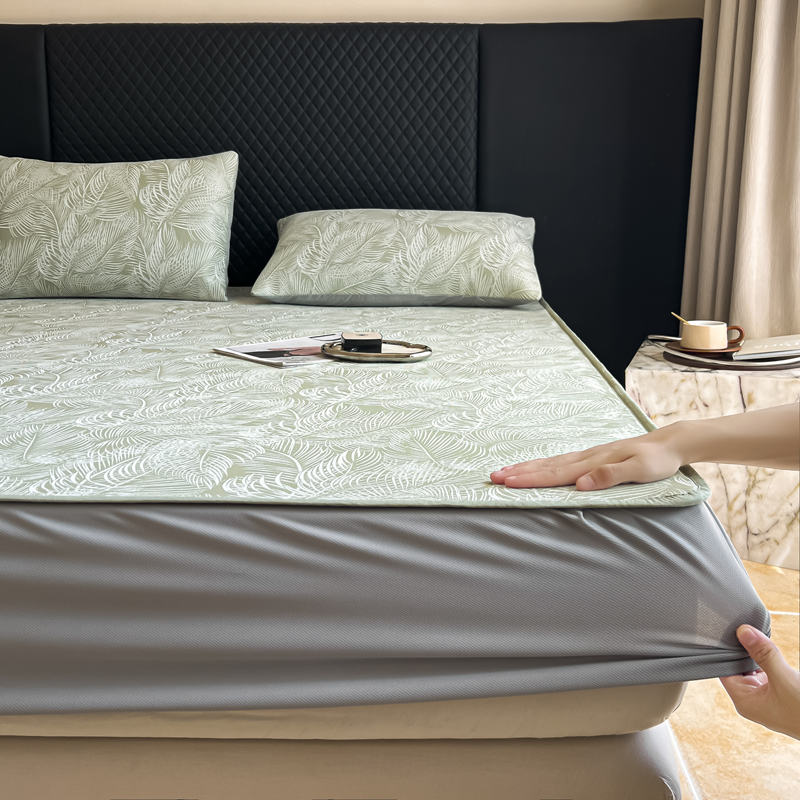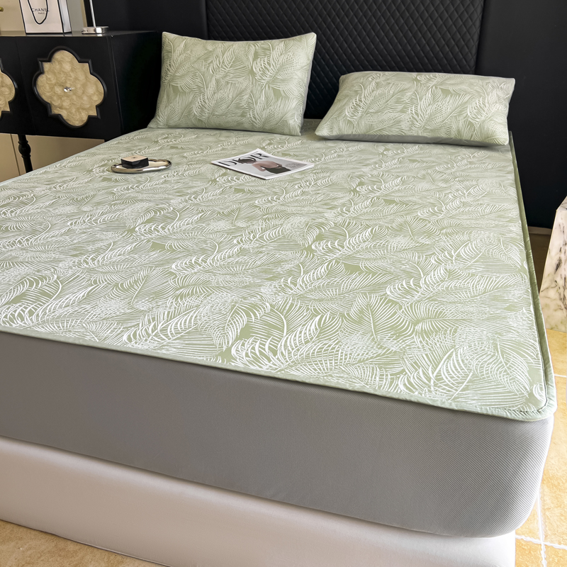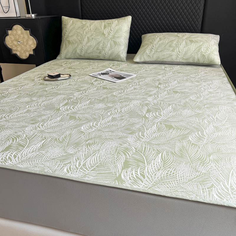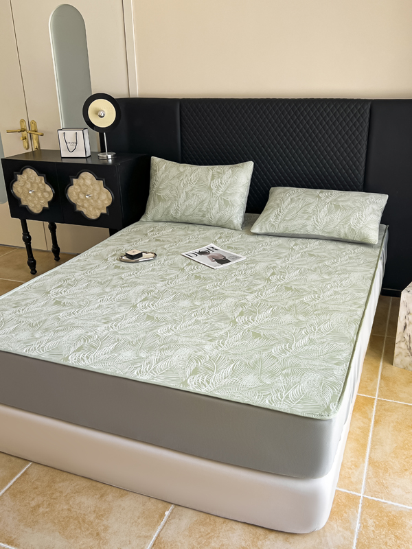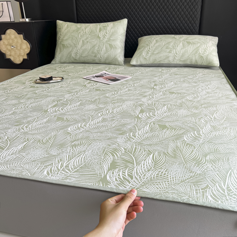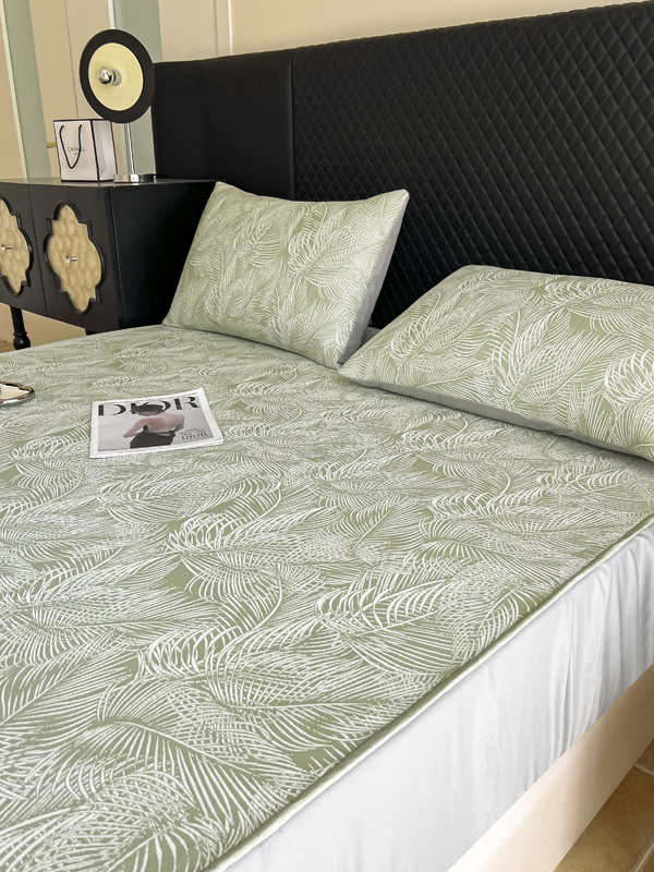 慕尚家纺 2025新款提花席床笠款 床笠-羽毛纷飞绿