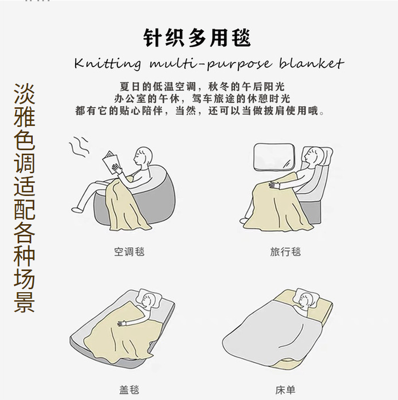 (总)暖绵绵家纺 2025新款柔软百搭简约家居针织毯-阿黛,阿黛-白色