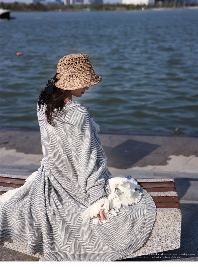 (总)暖绵绵家纺 2025新款针织盖毯--弗罗瑟,弗罗瑟-驼色,弗罗瑟-银灰
