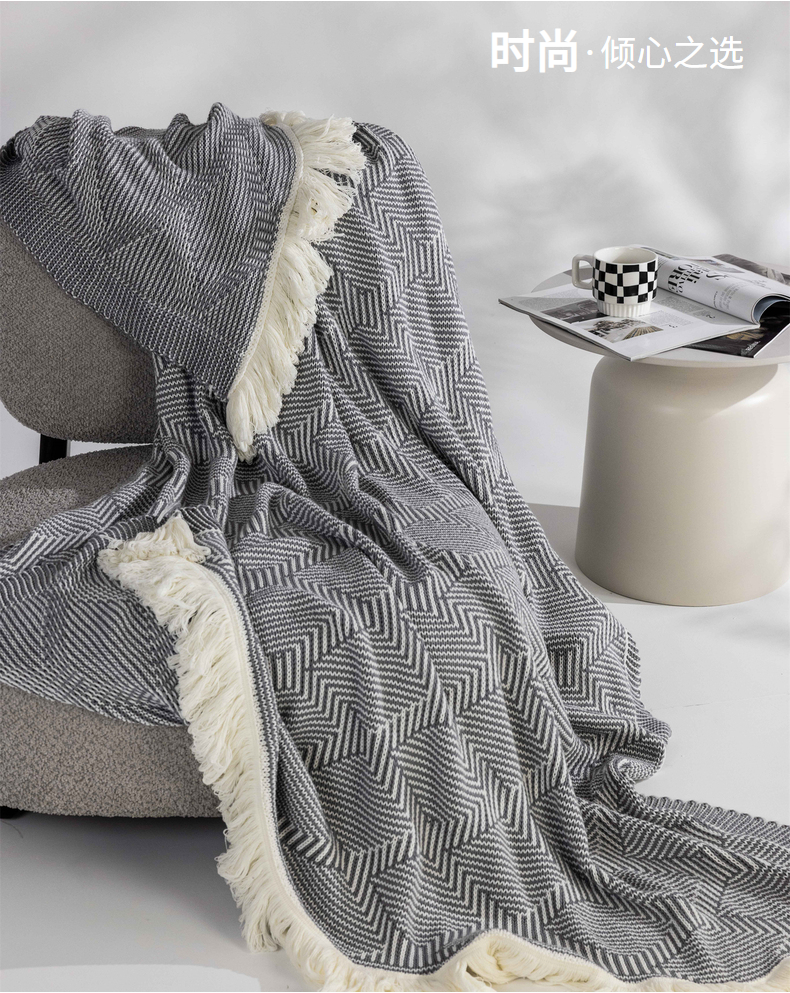 商品名称:暖绵绵家纺 2025新款棉腈混纺毛毯-艾尔多 灰白色