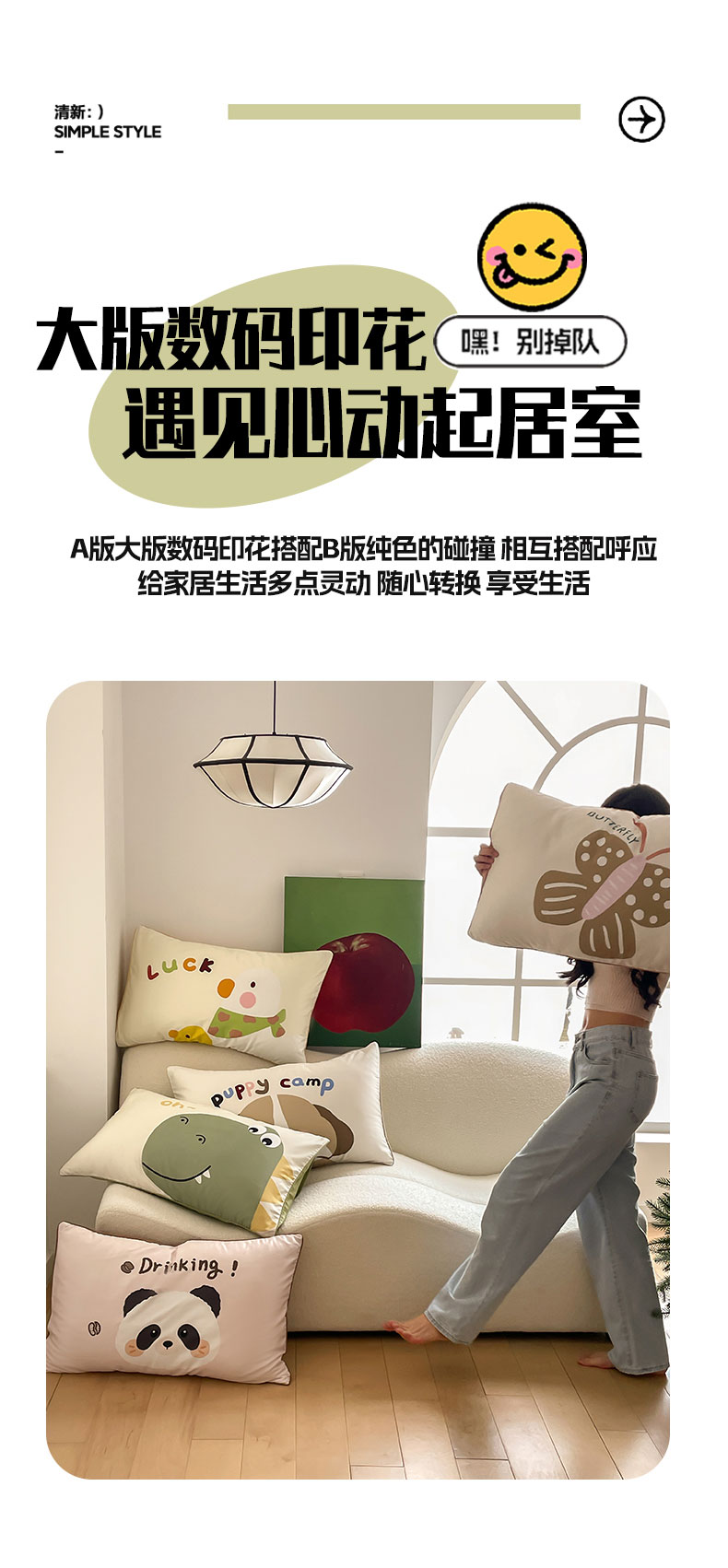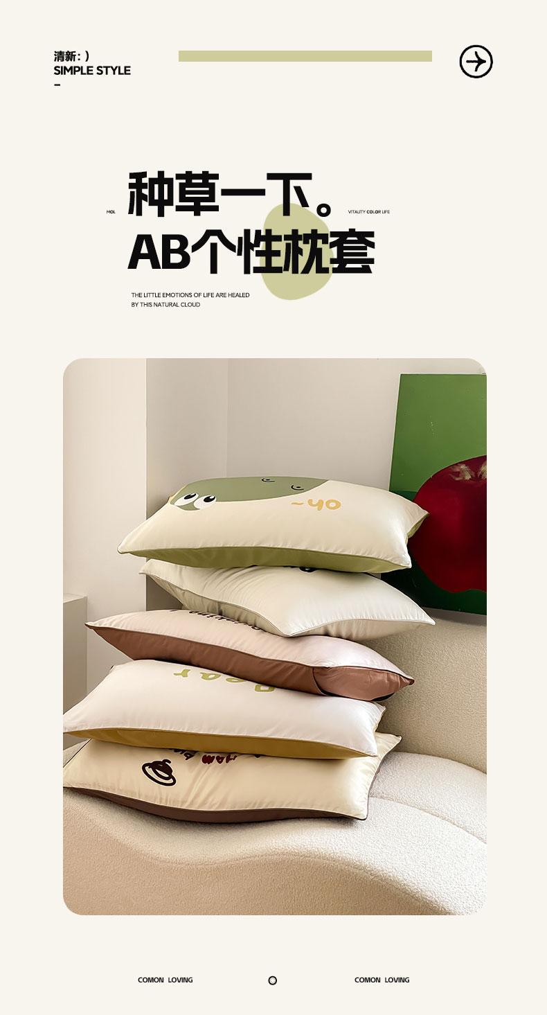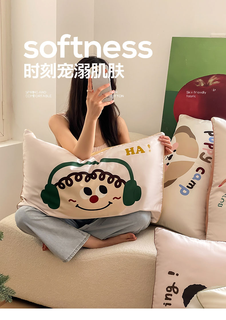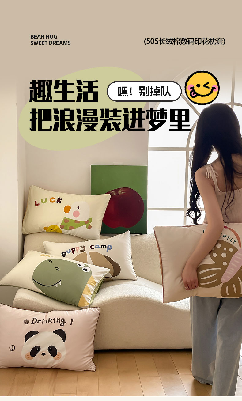 FORTWO家纺原创设计 2024新款50S长绒棉数码印花枕套 甜甜圈