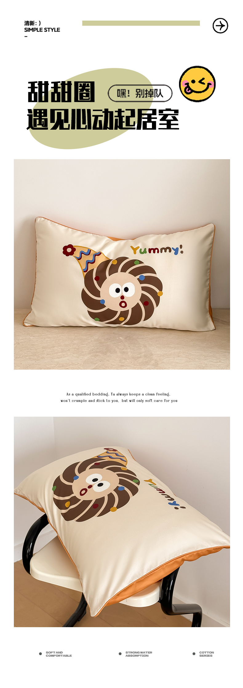 商品名称:FORTWO家纺原创设计 2024新款50S长绒棉数码印花枕套 甜甜圈