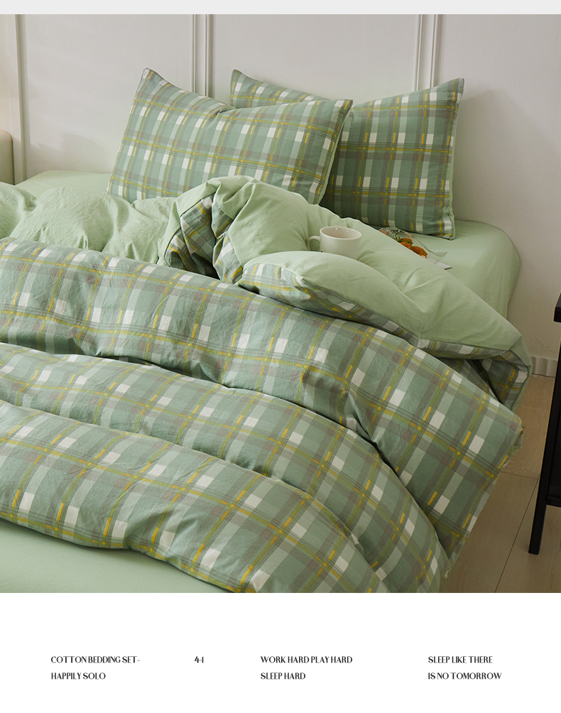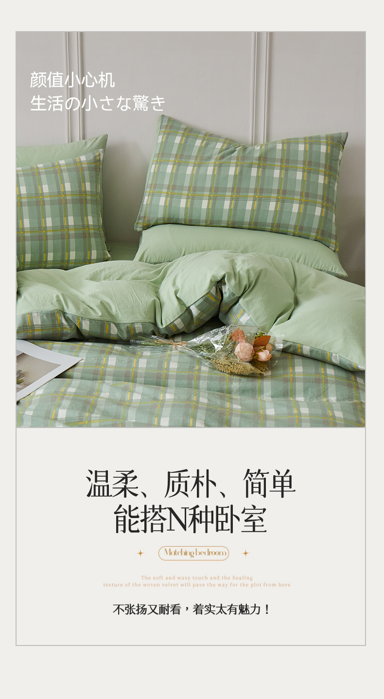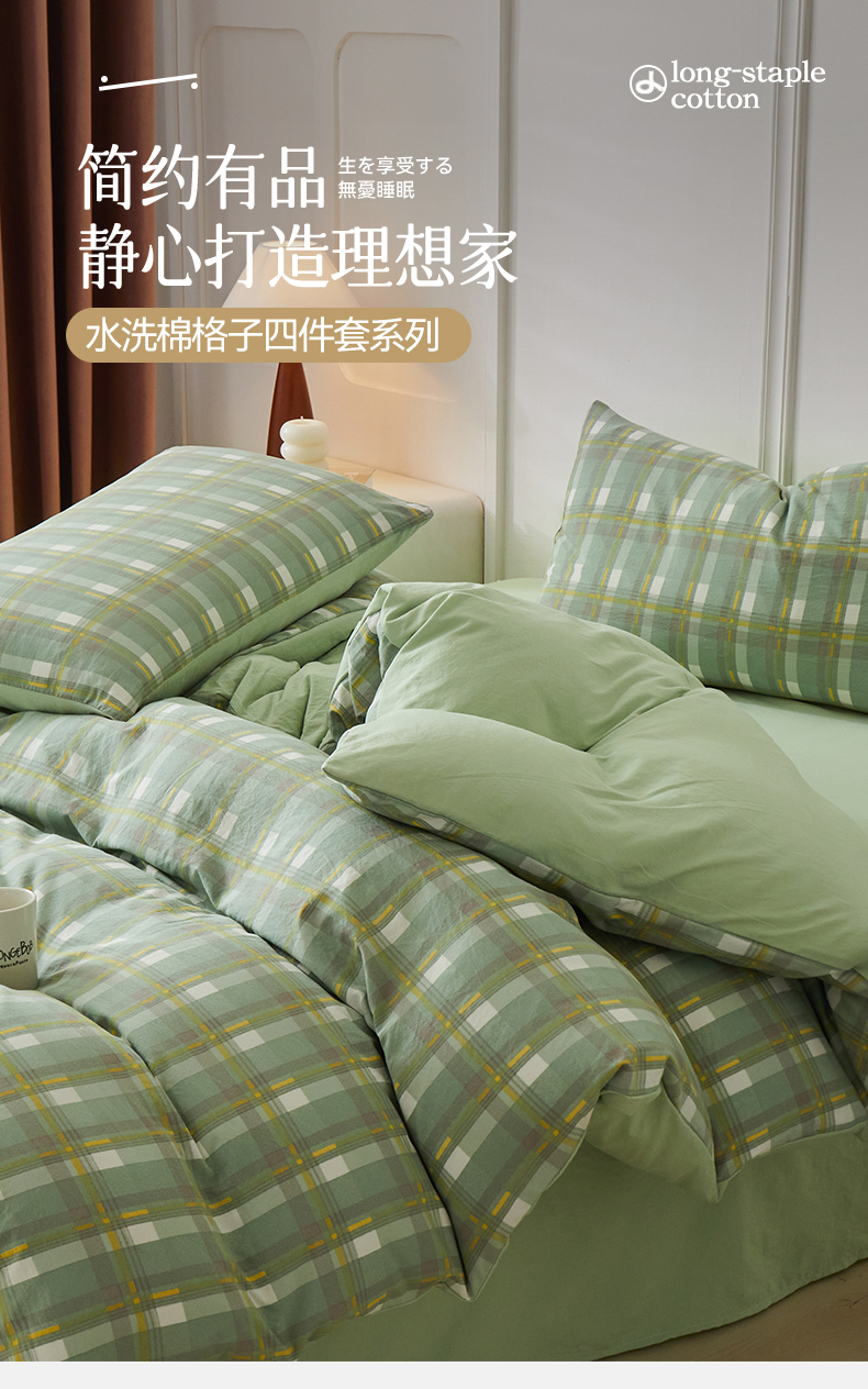 当前位置: 91家纺网 > 商品网购 > 床品套件 > 四件套 > 水洗棉四件套 > 盛秋家纺 2025新款水洗棉格子系列四件套 伯曼+灰绿