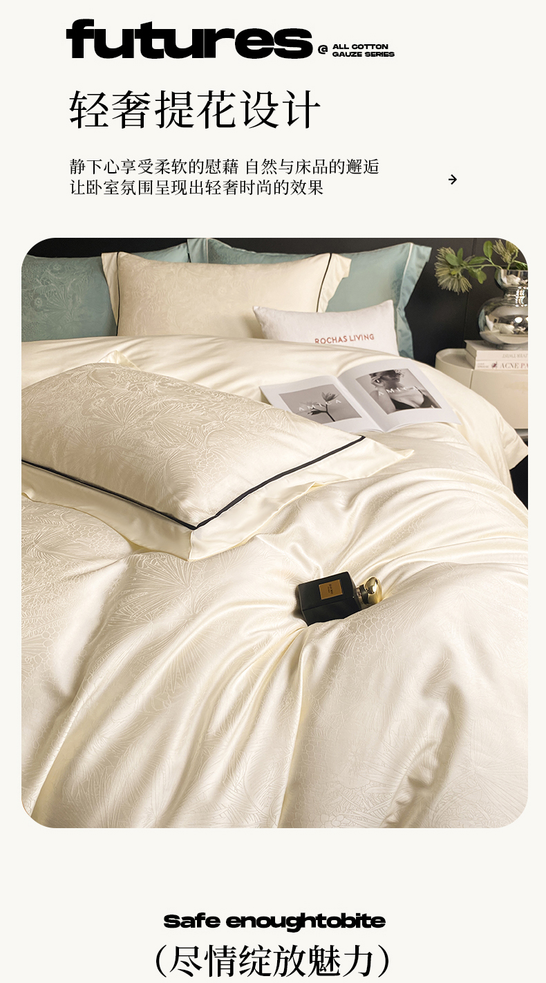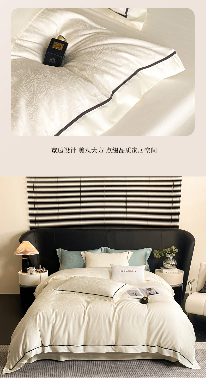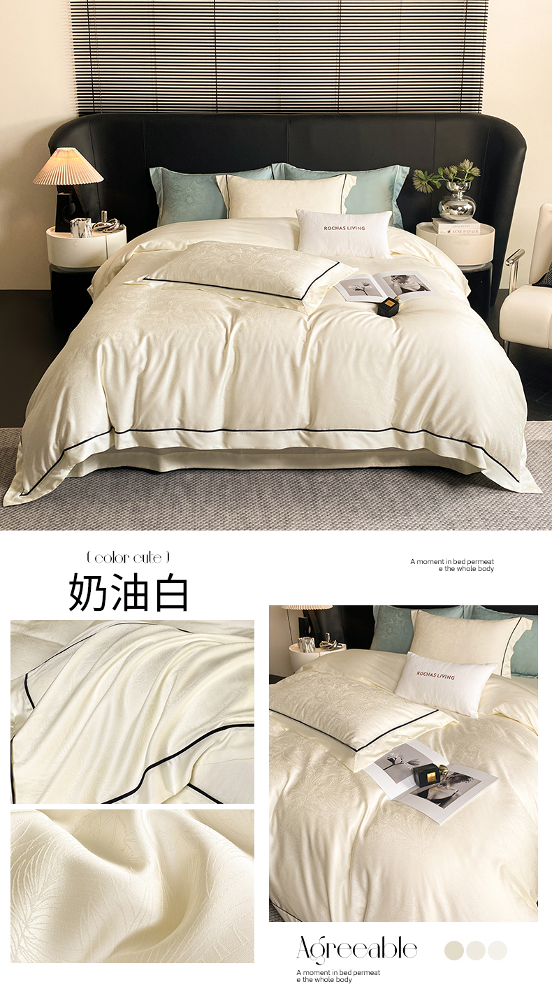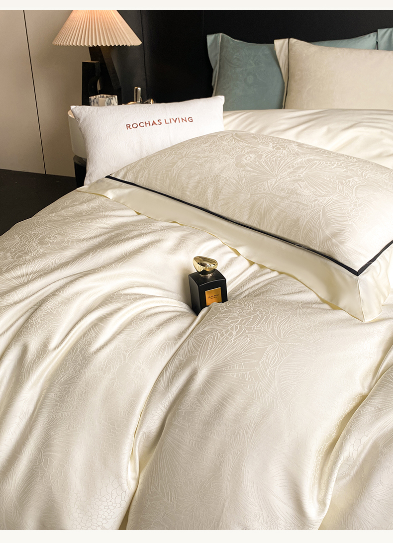 魅都 2025新款天丝棉提花热带雨林四件套 奶油白