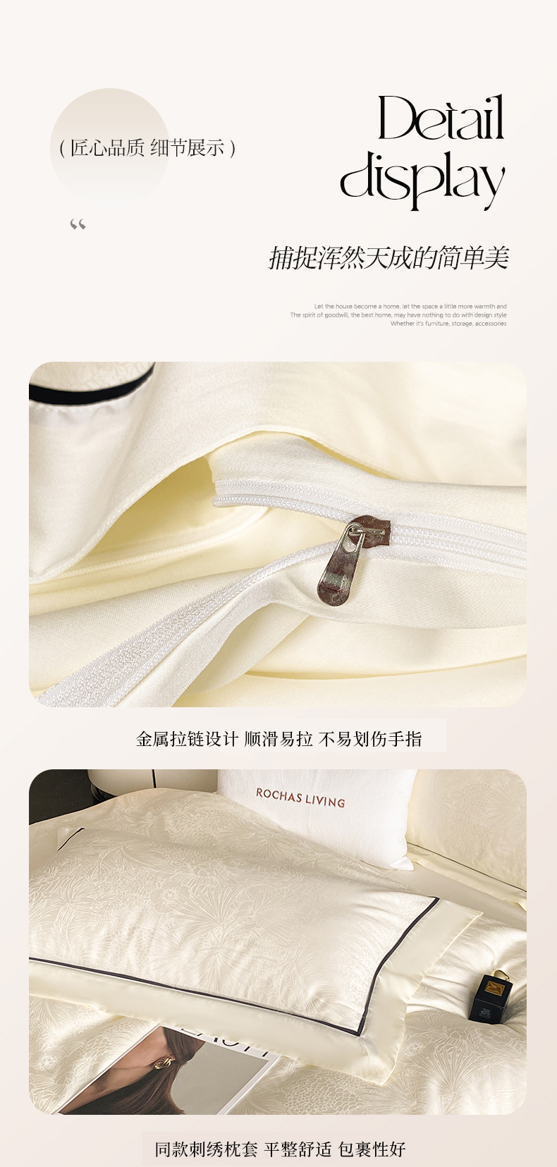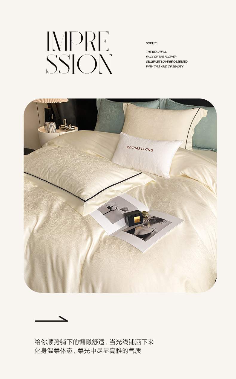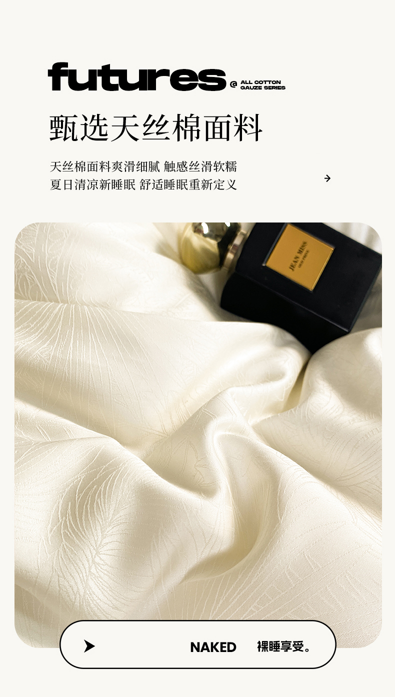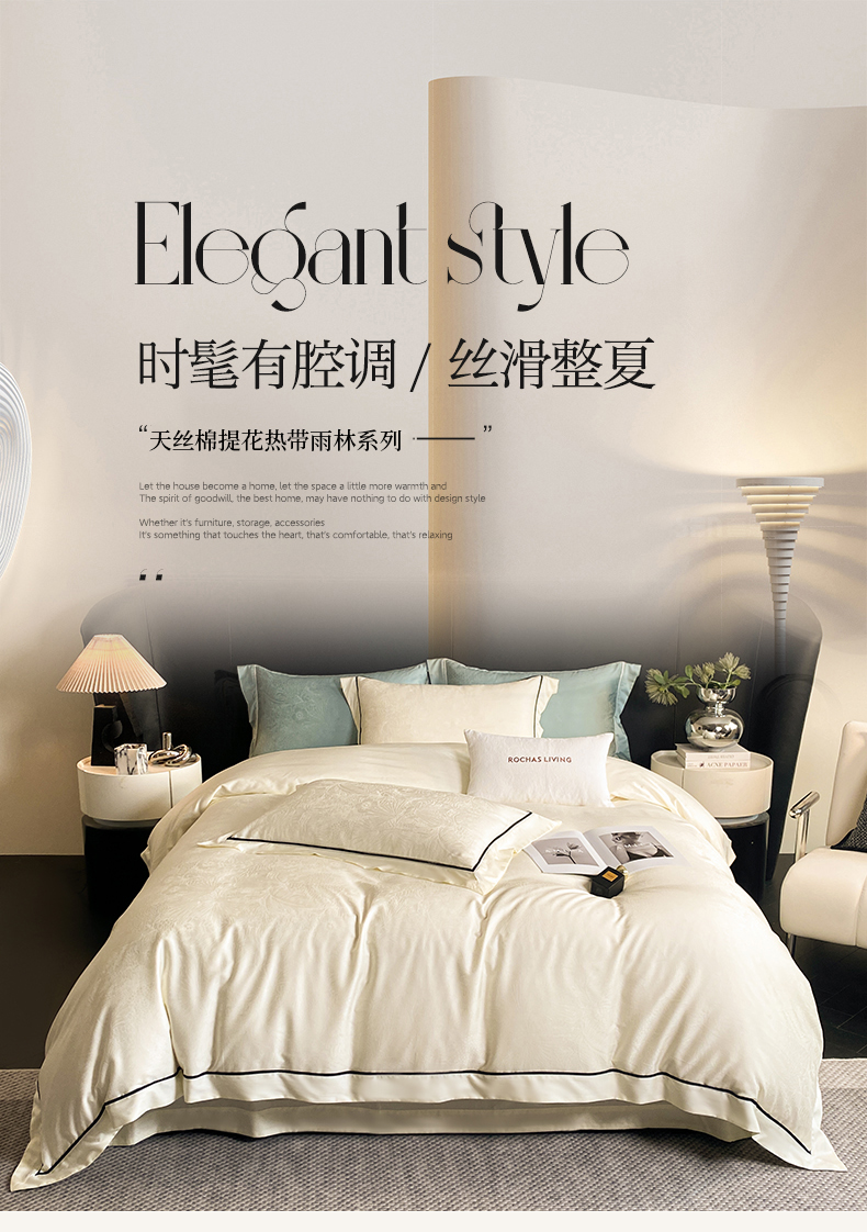 魅都 2025新款天丝棉提花热带雨林四件套 奶油白
