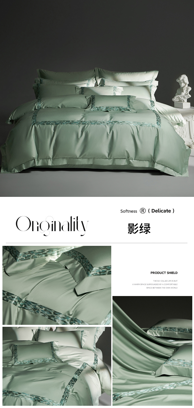 商品名称:淼铭家纺 2025新款新品高端新品甄棉四件套-影系列 影•绿