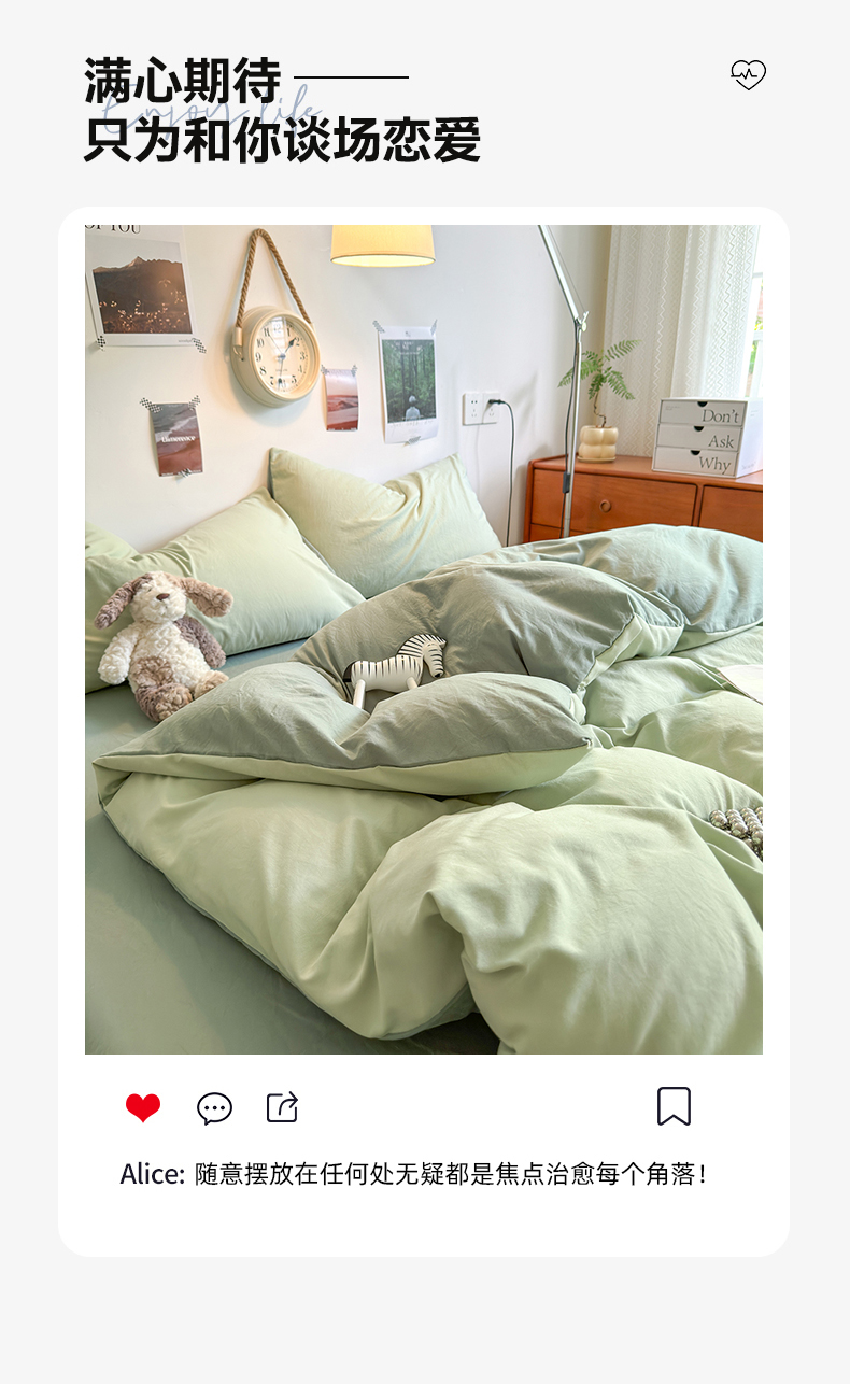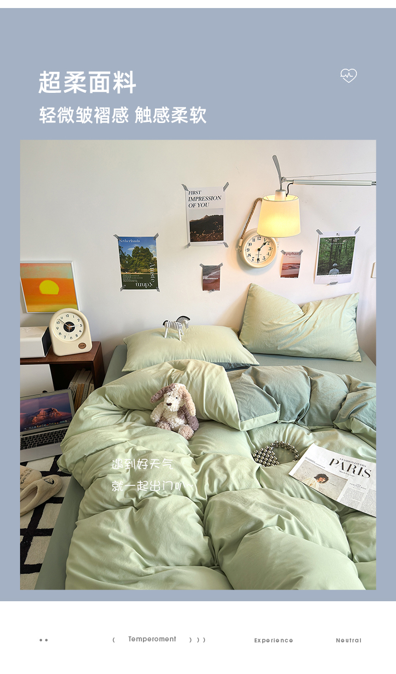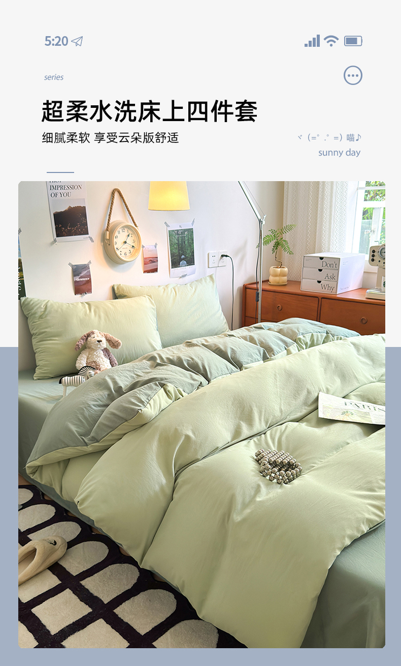 当前位置: 91家纺网 > 商品网购 > 床品套件 > 四件套 > 水洗棉四件套 > 沐芷 2024新款超柔105g纯色水洗棉四件套-柔雅系列 柔雅-草绿果绿