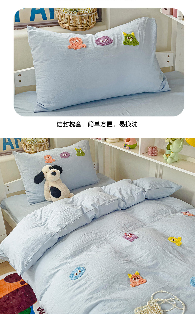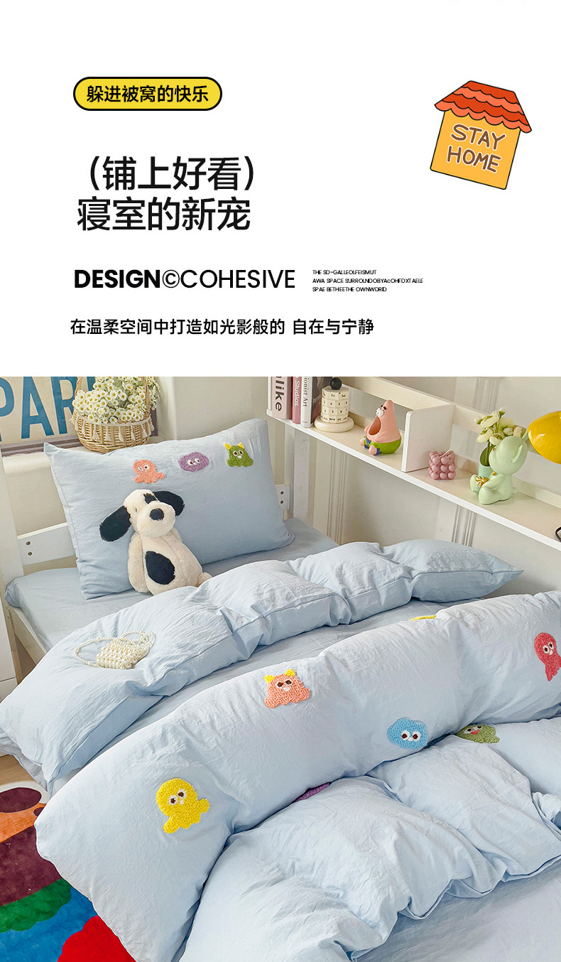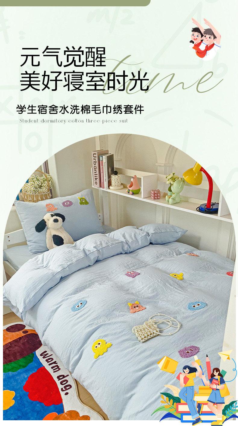 当前位置: 91家纺网 > 商品网购 > 床品套件 > 三件套 > 韩巢家纺 2024新款超柔水洗棉毛巾绣学生宿舍上下铺三件套四件套-小精灵系列 小精灵浅蓝