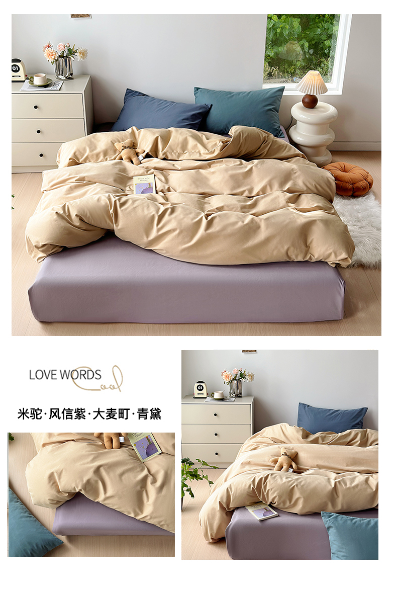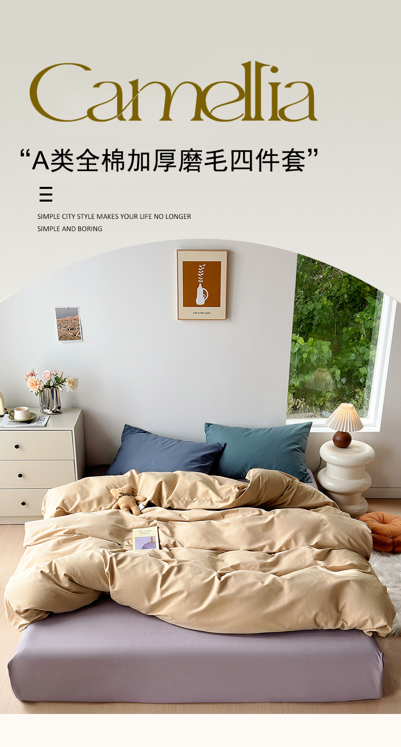 当前位置: 91家纺网 > 商品网购 > 床品套件 > 四件套 > 普通磨毛四件套 > 绫韵家纺 2024秋冬新款A类全棉加厚磨毛混搭纯棉磨毛四件套 米驼·风信紫·大麦町·青黛