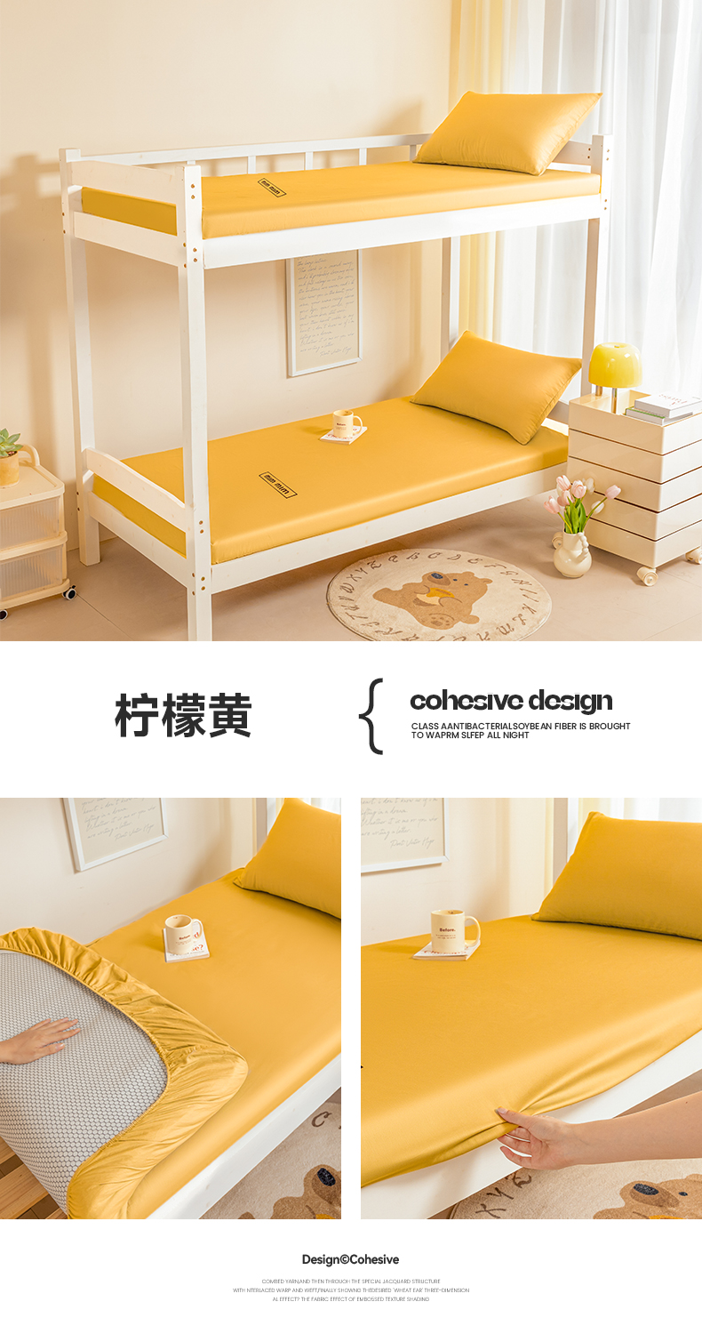 商品名称:寐眠 2024新款40支全棉刺绣学生床笠 柠檬黄