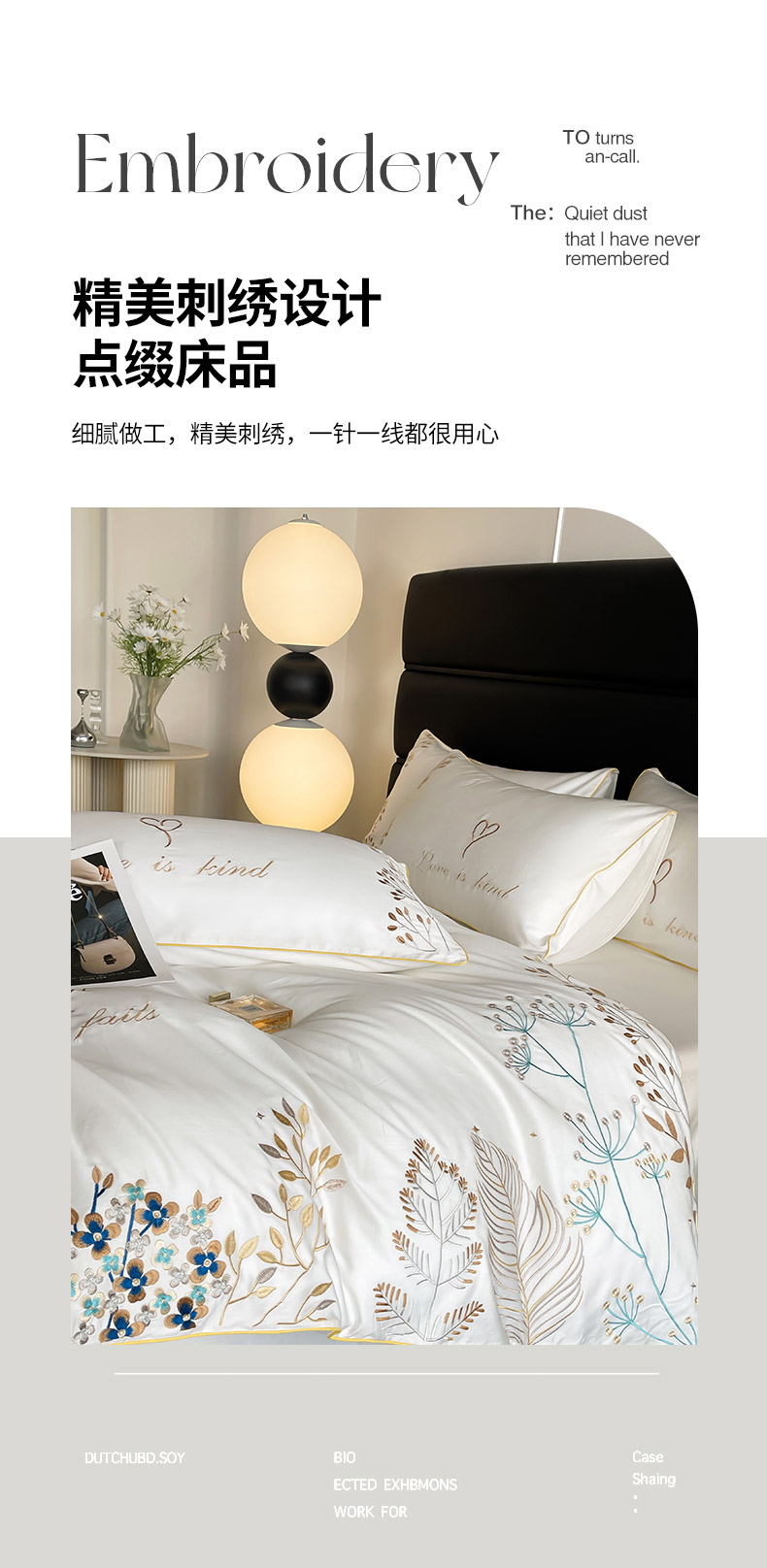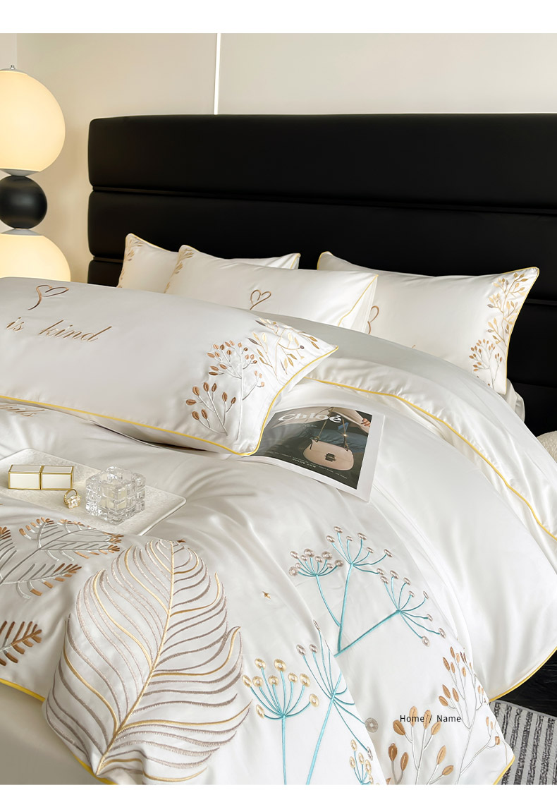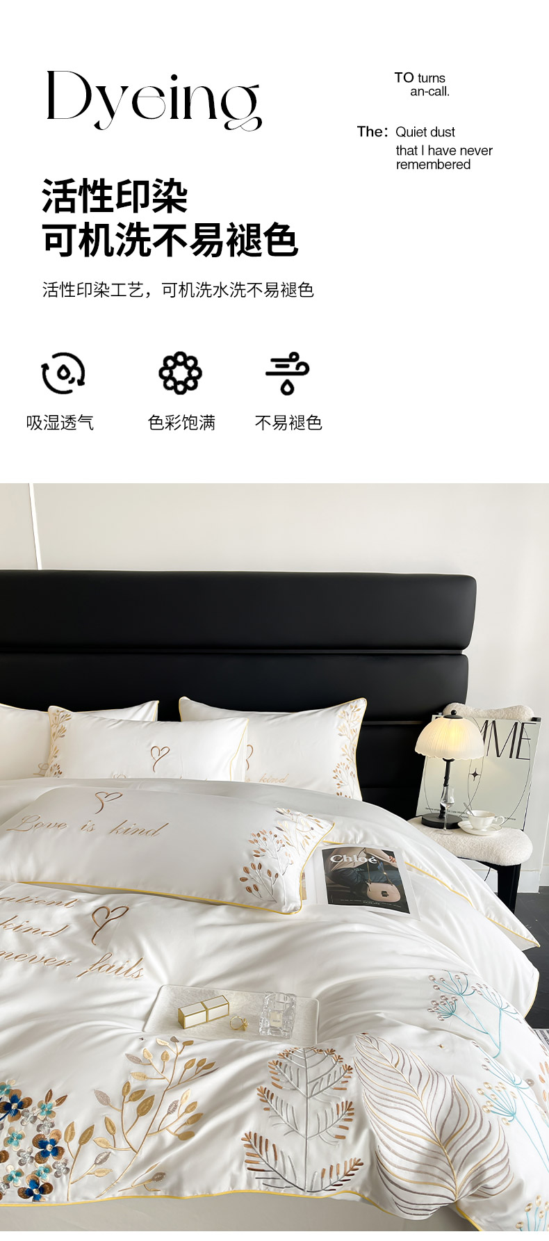 商品名称: 2024新款100支长绒棉四件套全棉纯棉重工刺绣天丝棉床单床笠款丝滑裸睡床上用品 菲洛拉-典雅白