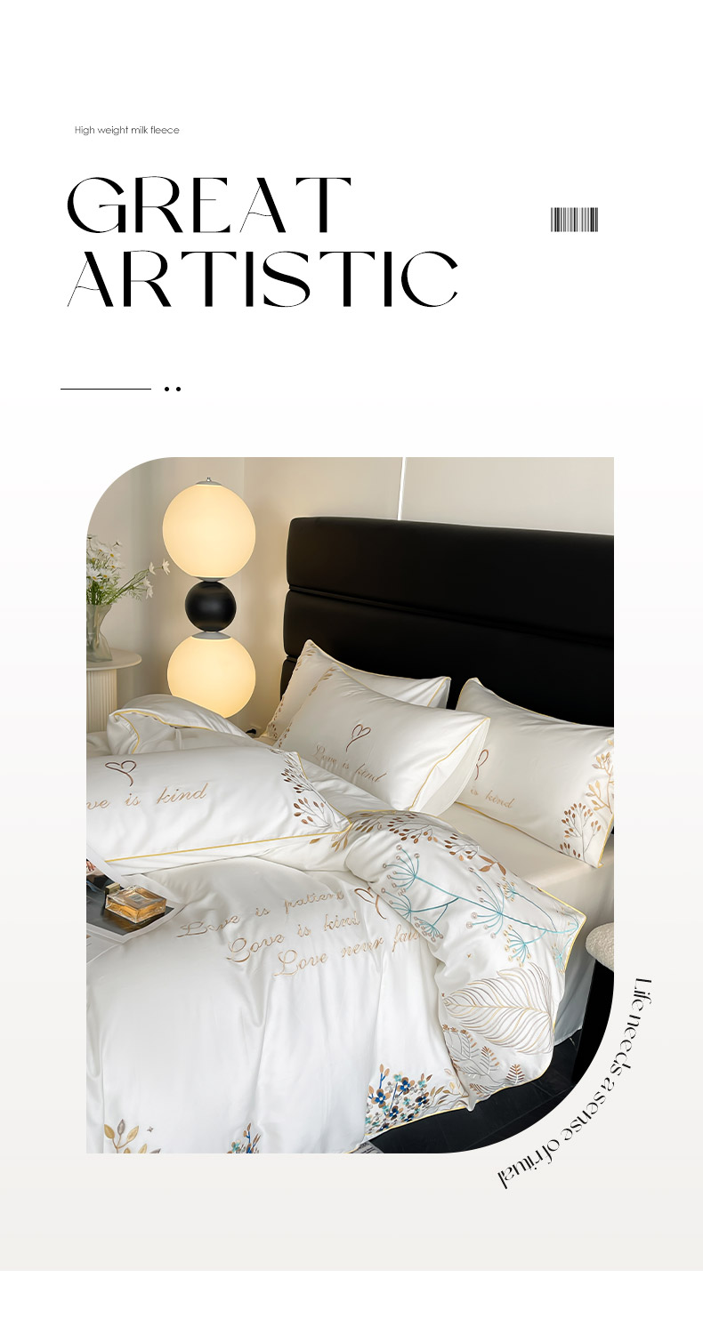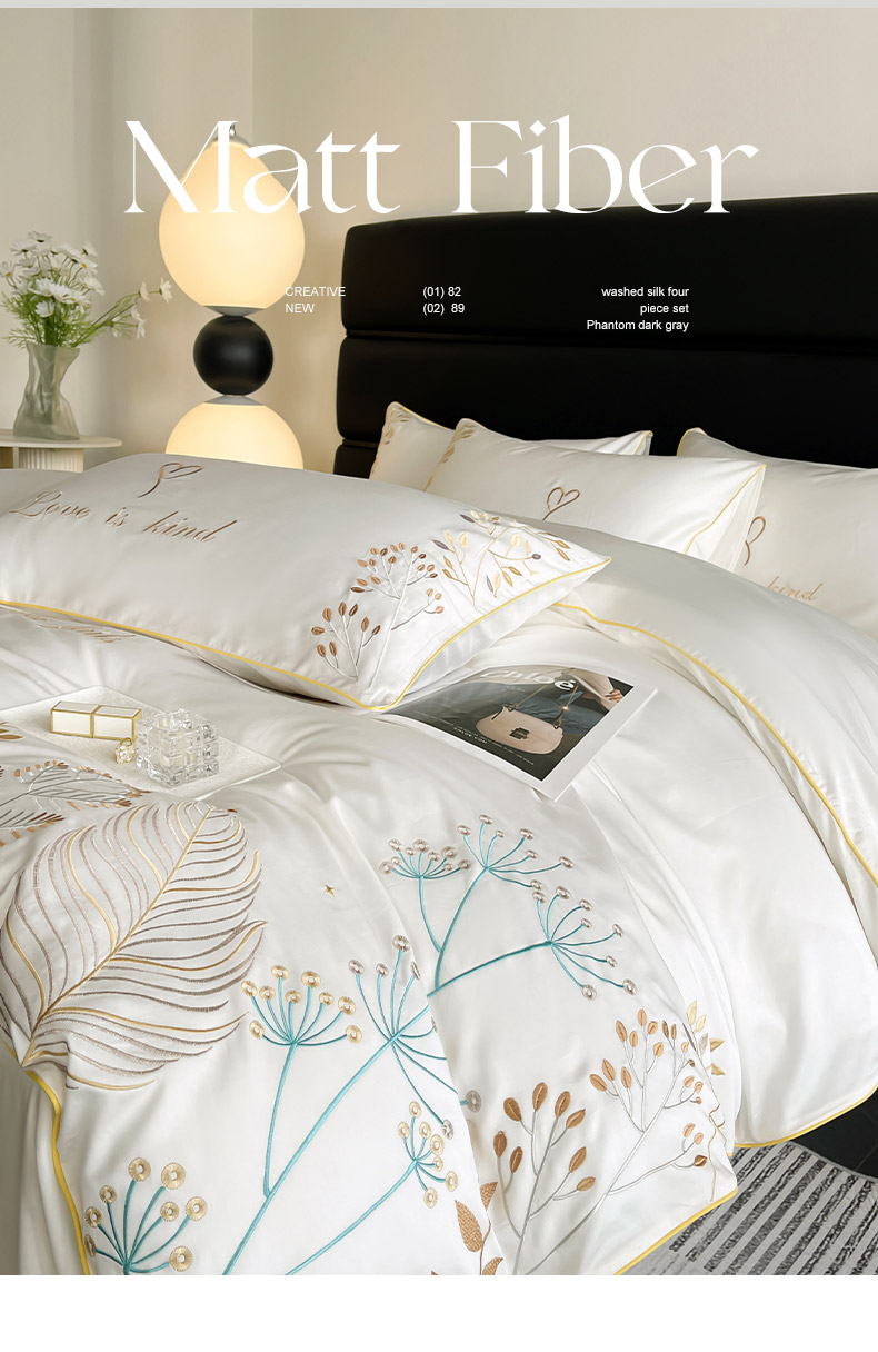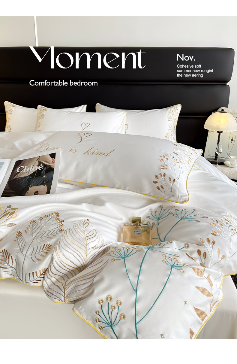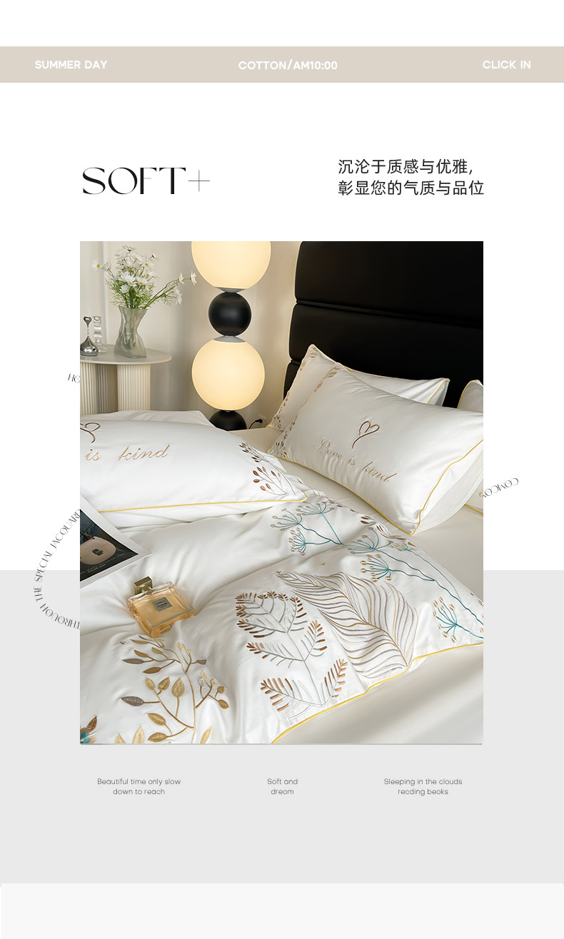 商品名称: 2024新款100支长绒棉四件套全棉纯棉重工刺绣天丝棉床单床笠款丝滑裸睡床上用品 菲洛拉-典雅白