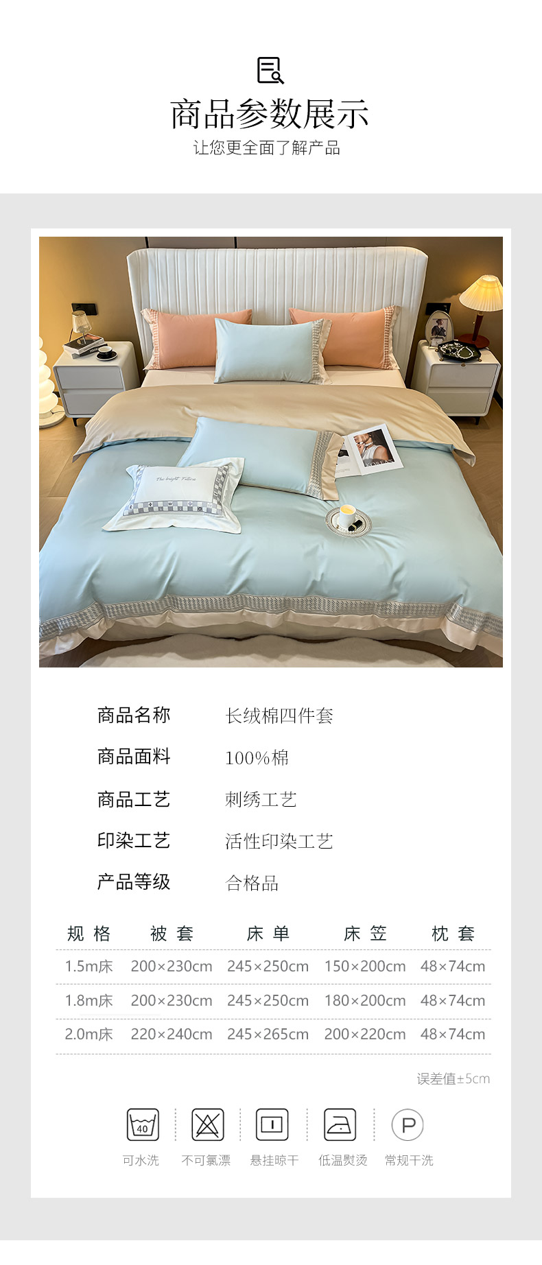 商品名称: 60支贡缎长绒棉四件套2023新款全棉纯棉千鸟格刺绣床单被套新疆棉100支床上用品床笠款 千鸟格-繁星蓝