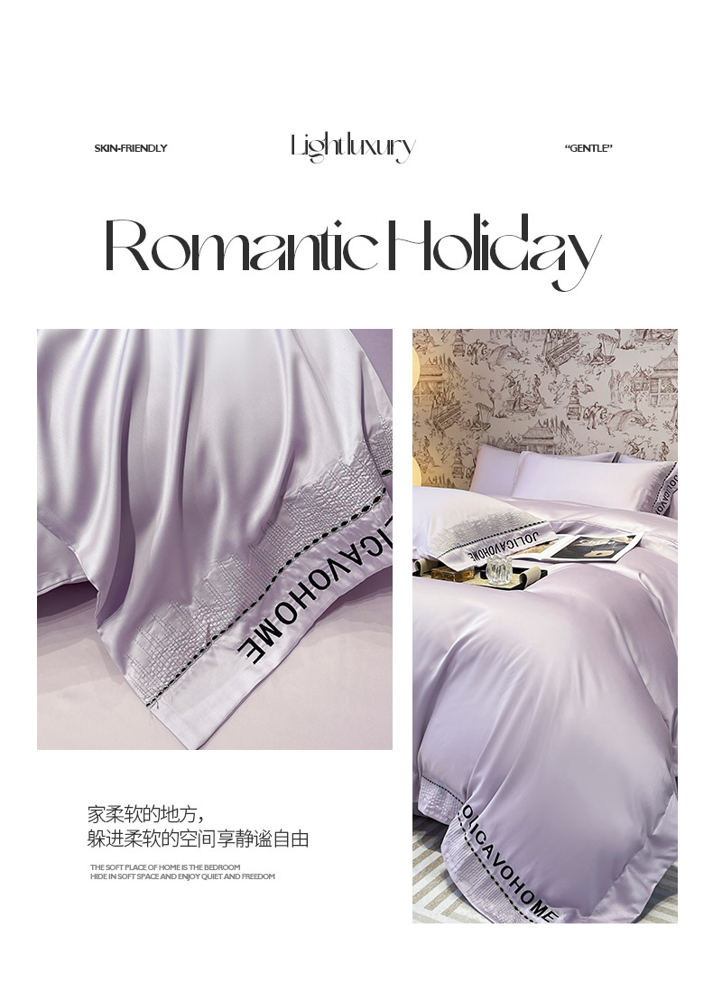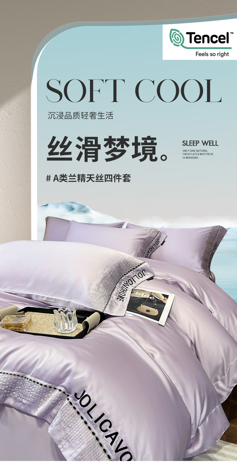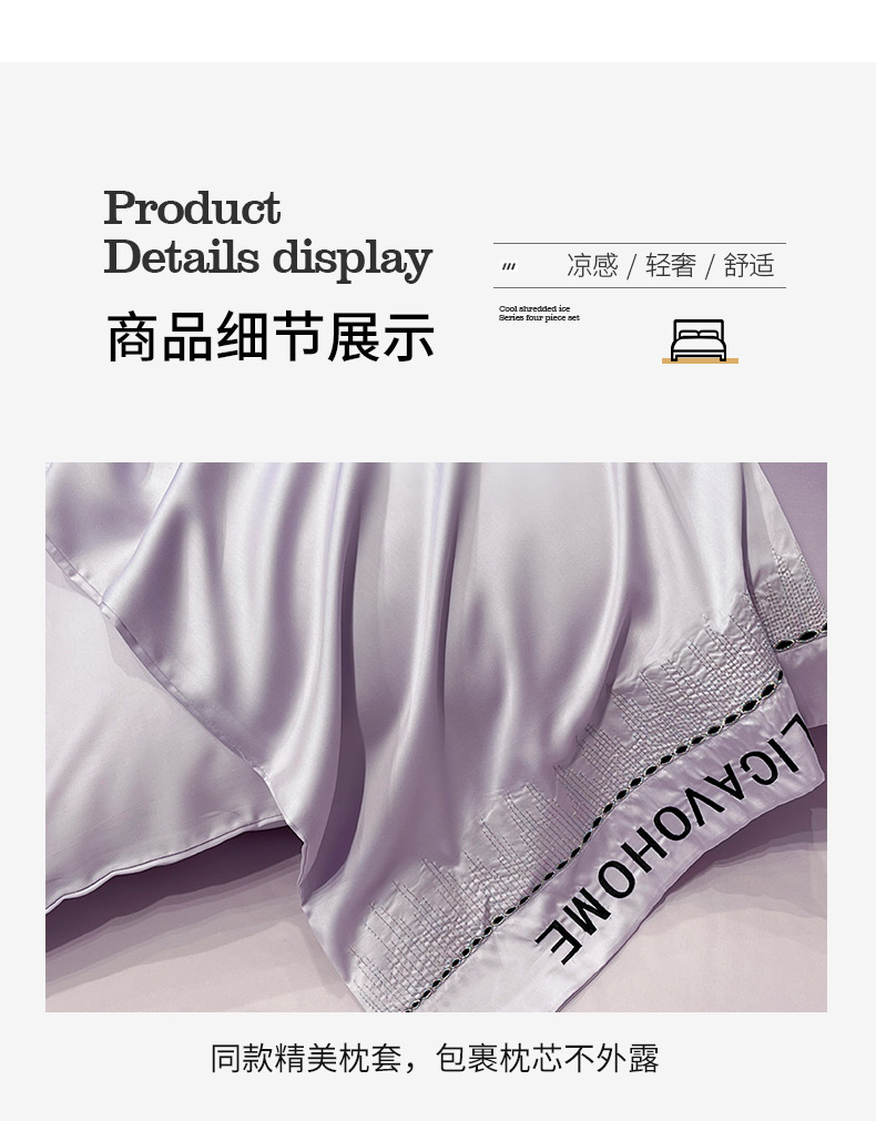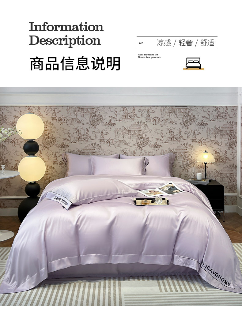 商品名称: 【A类兰精天丝】夏季丝滑真丝绸四件套凉感丝床单被套天丝棉床笠款冰丝裸睡床上用品 兰溪-熏衣紫