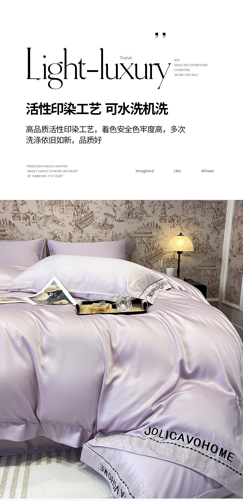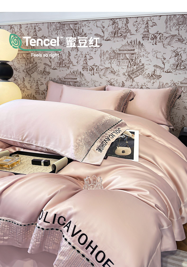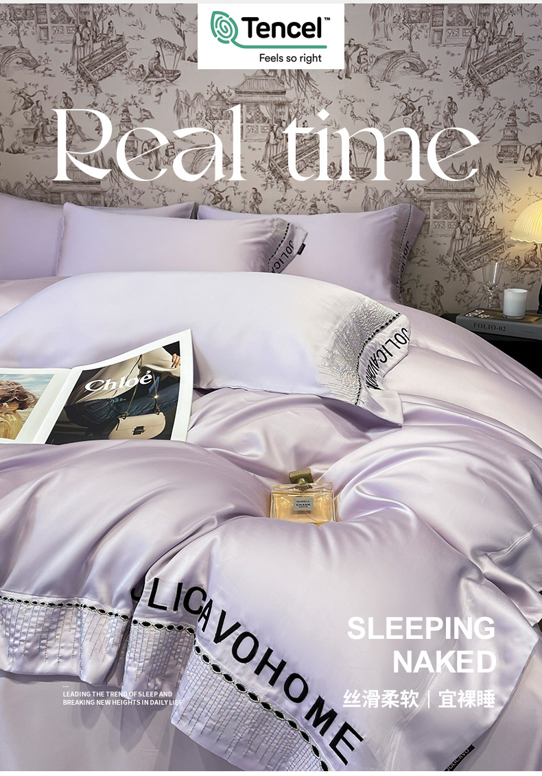 商品名称: 【A类兰精天丝】夏季丝滑真丝绸四件套凉感丝床单被套天丝棉床笠款冰丝裸睡床上用品 兰溪-熏衣紫