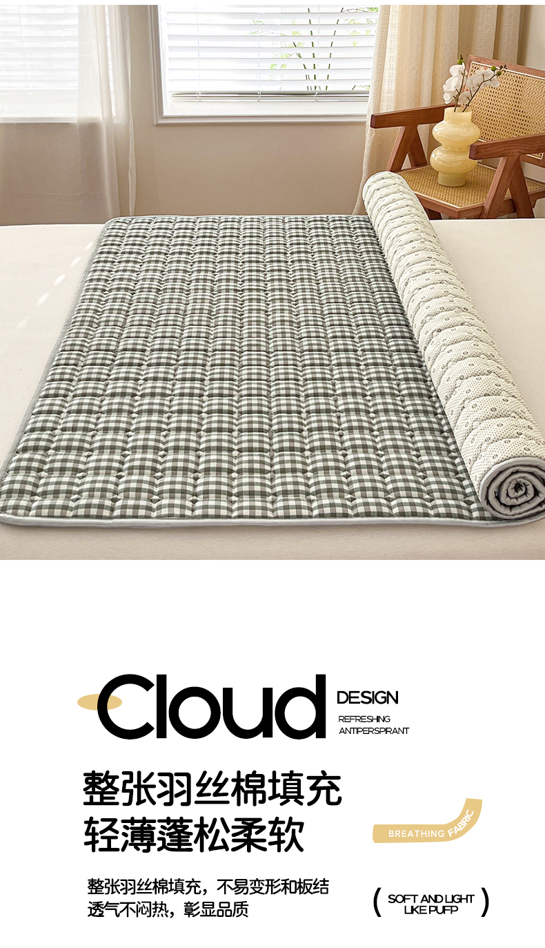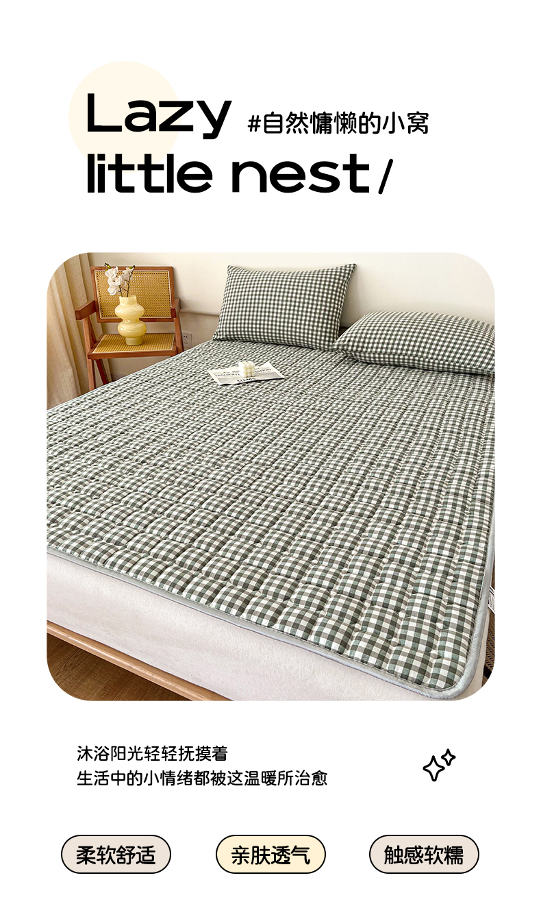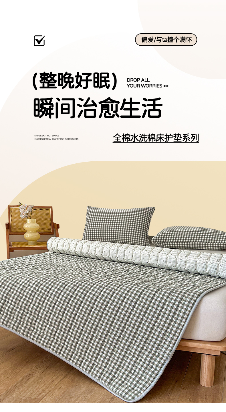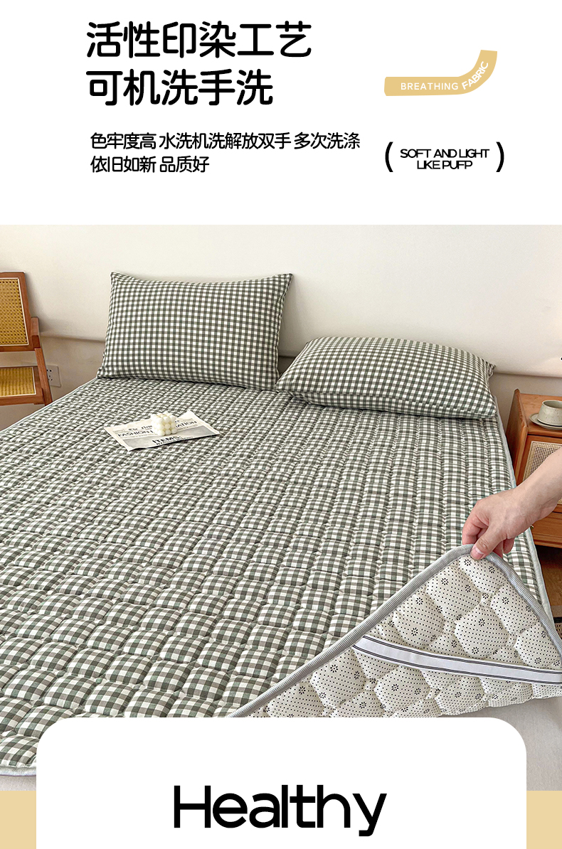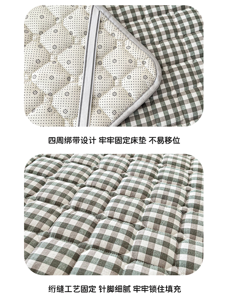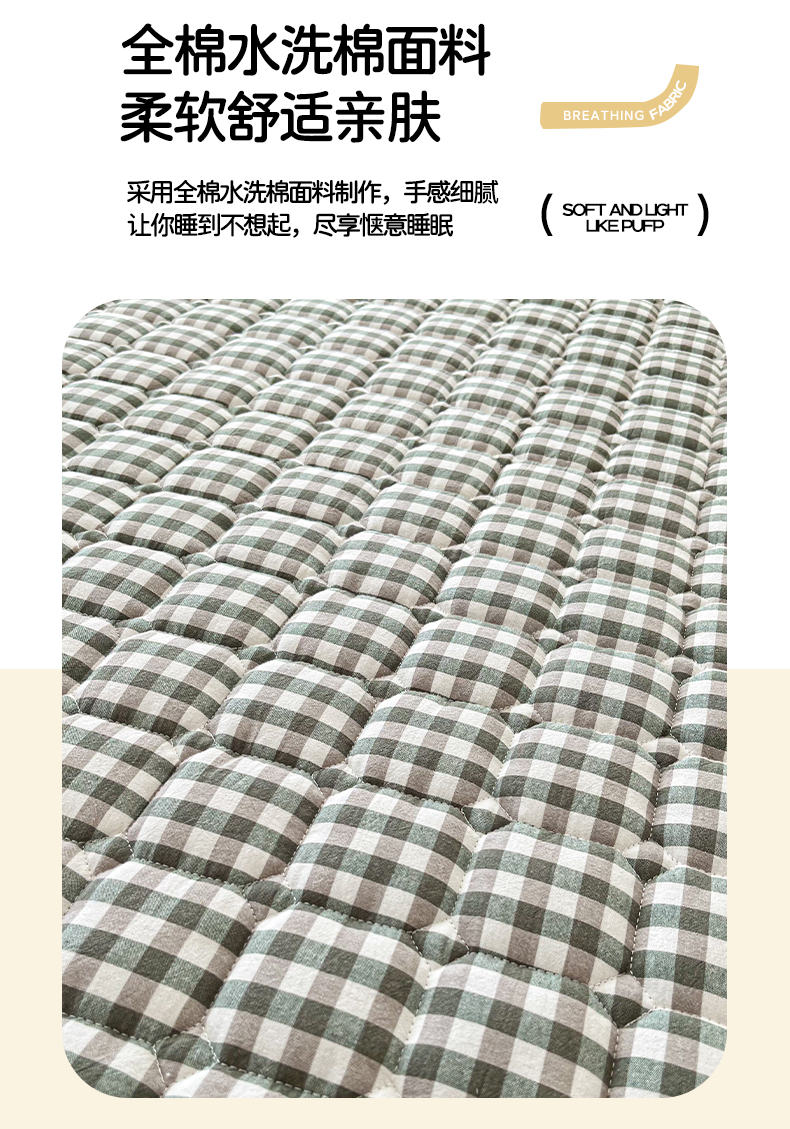 当前位置: 91家纺网 > 商品网购 > 床垫/床褥 > 普通床垫 > 卡伦家纺 2025新款全棉色织水洗棉夹棉床垫席梦思保护垫 绿小格