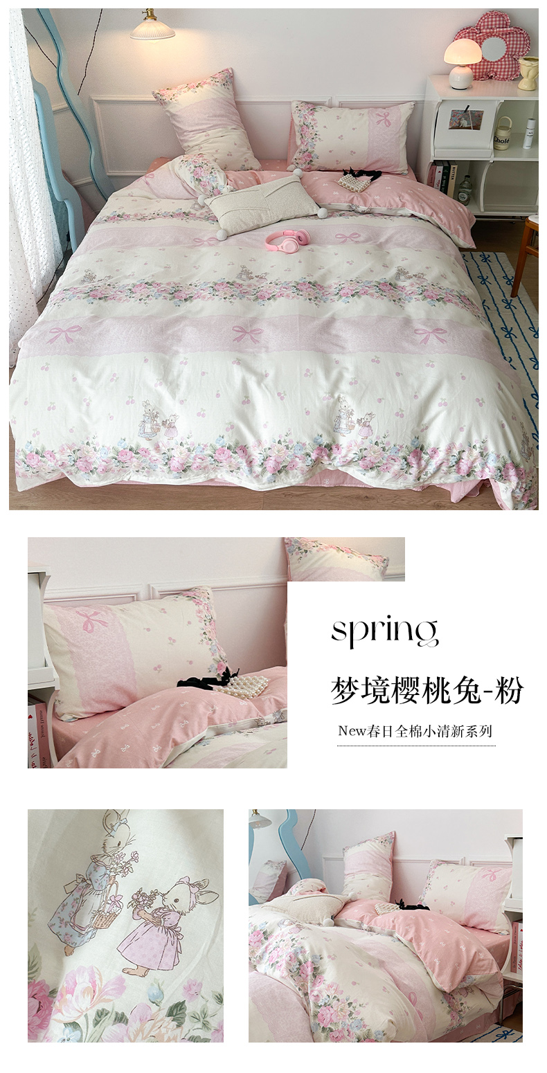(总)昔可 2023新款全棉四件套-第五批,春日采花小兔,复古波西,落樱紫花,绿野小兔,排排郁金香,芍药女孩,叶子樱桃