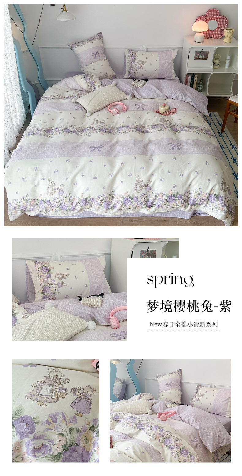 (总)昔可家纺 2023新款全棉小花系列四件套,柏林少女,小小的樱桃,紫色葡萄