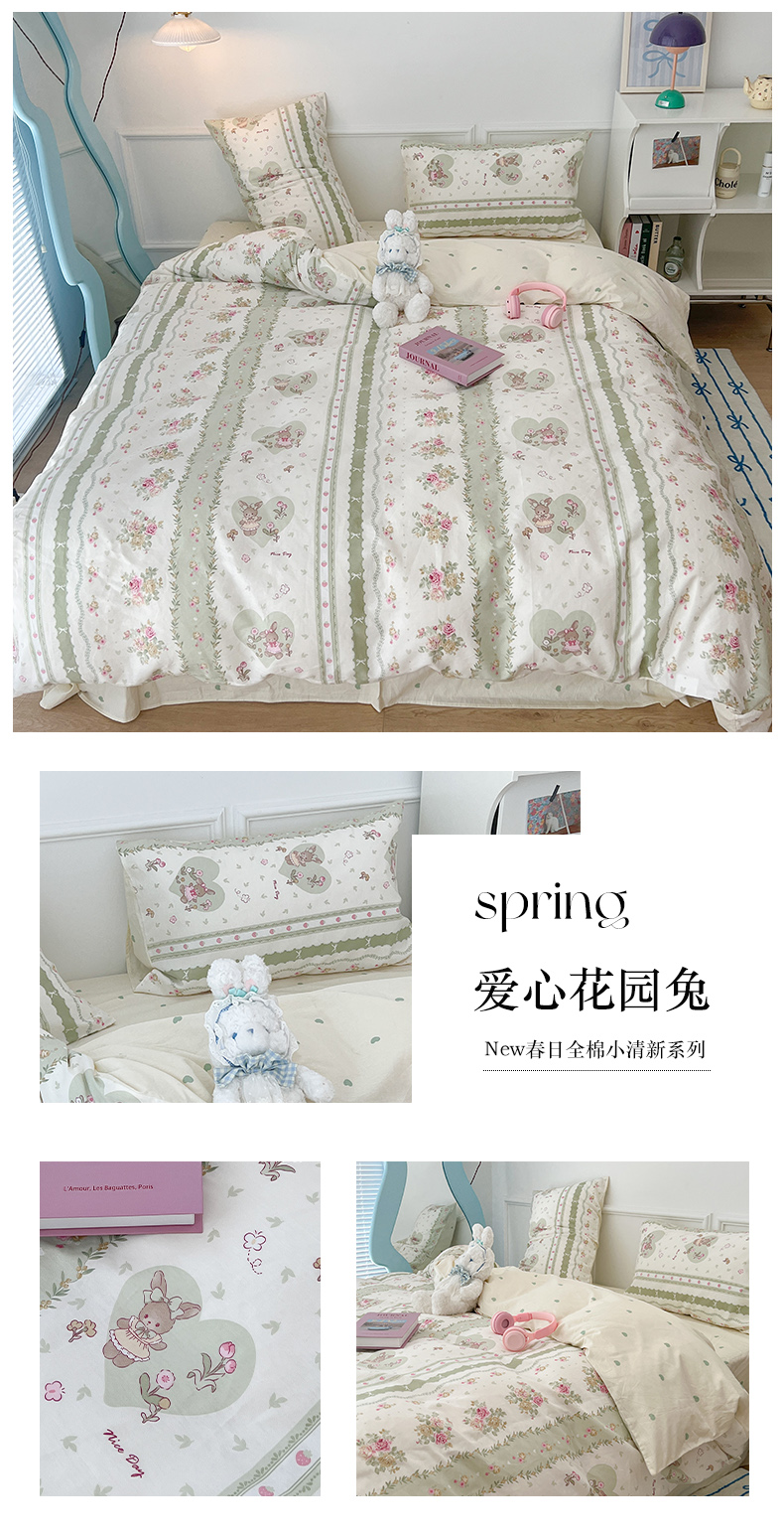 商品名称:2024新款13070跑量款全棉四件套--小清新系列 爱心花园兔