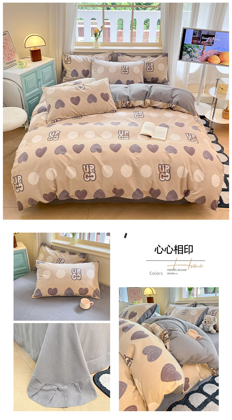 当前位置: 91家纺网 > 商品网购 > 床品套件 > 四件套 > 普通磨毛四件套 > 莱米家纺 2024新款全棉加厚磨毛印花四件套 心心相印