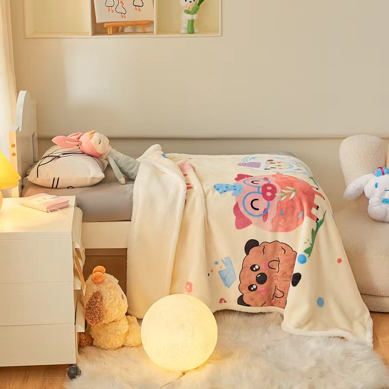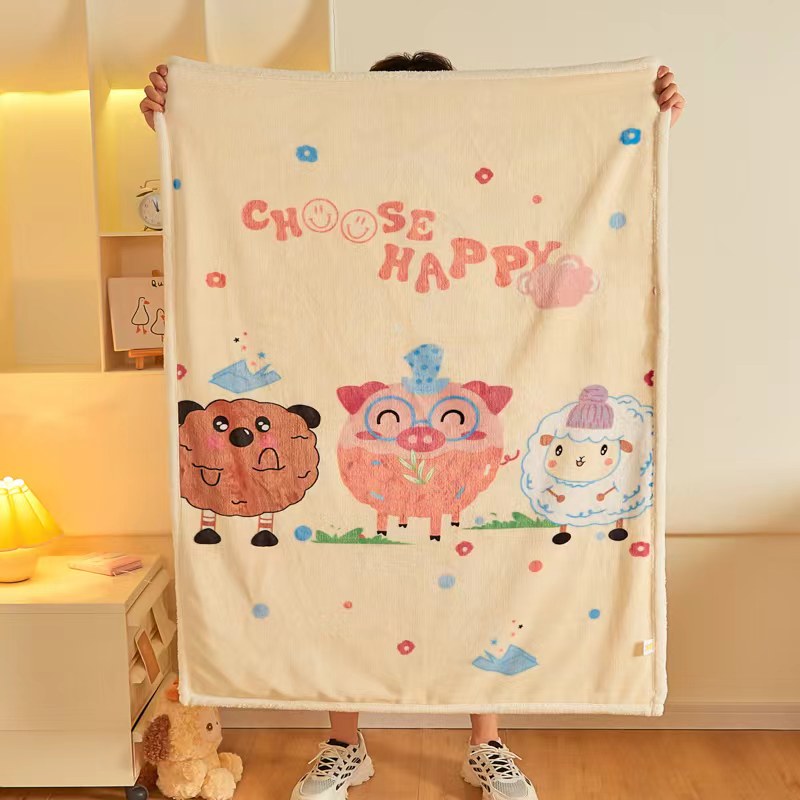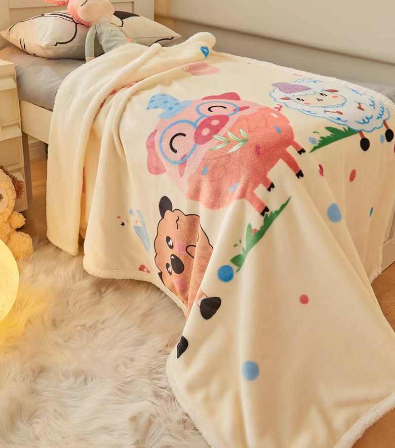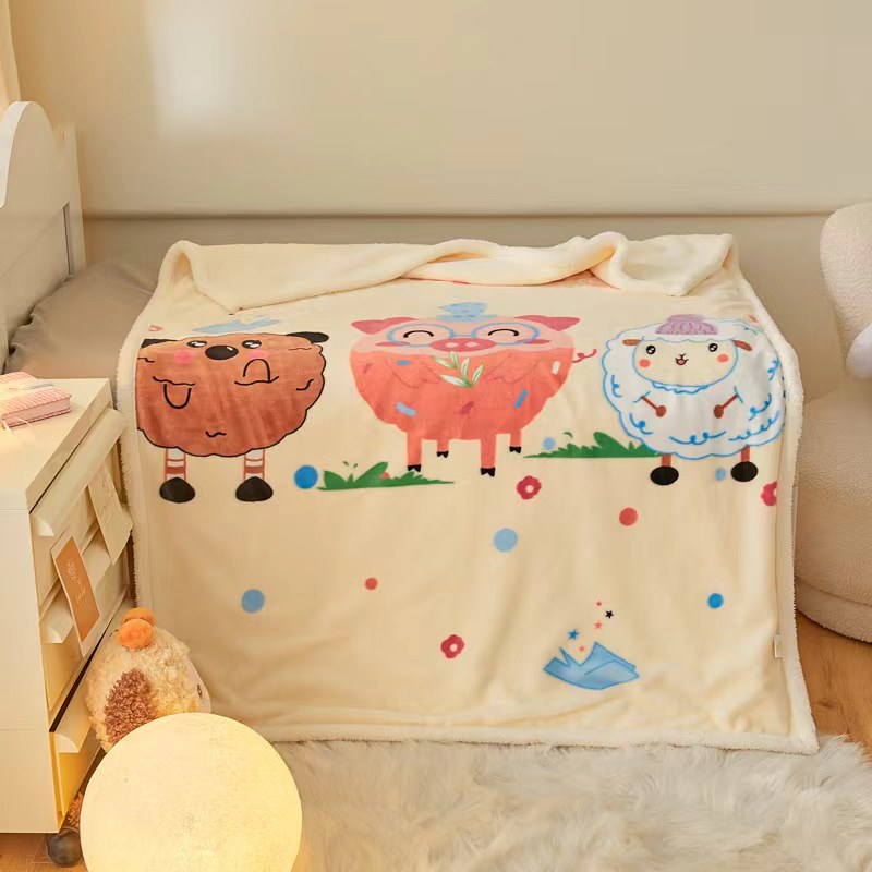 茗婷家纺 2025款羊羔绒双层加厚保暖儿童毛毯云毯供外贸跨境亚马逊TRMU 小猪羊