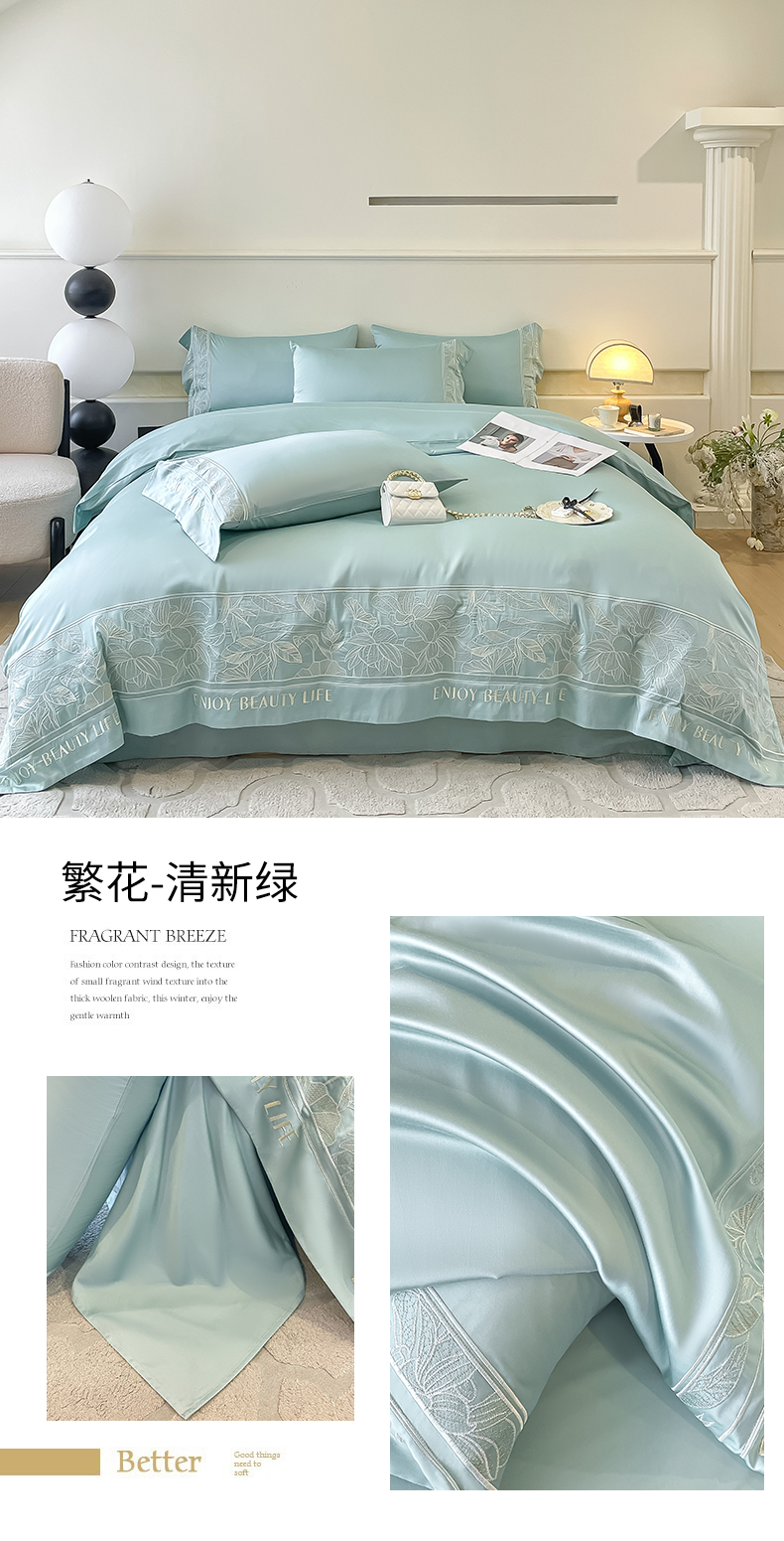当前位置: 91家纺网 > 商品网购 > 床品套件 > 四件套 > 全棉普通四件套 > 慕色家纺 2024新款全棉刺绣四件套-繁花系列 繁花-清新绿